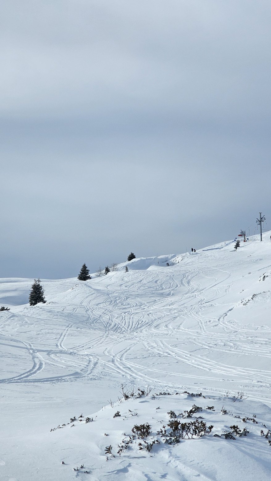Toujours tres soufflé en haut, faut vraiment descendre pour trouver de la neige. Manquait pas grand chose... mais quelques centimètres encore et se sera parfait ! Du coup pistes plutot tres cool, on attendra encore quelques jours pour un bord de piste sympa.