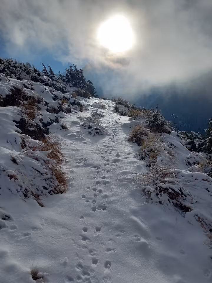 La journée commence par du portage car je n'ose pas rouler sur la piste enneigee....