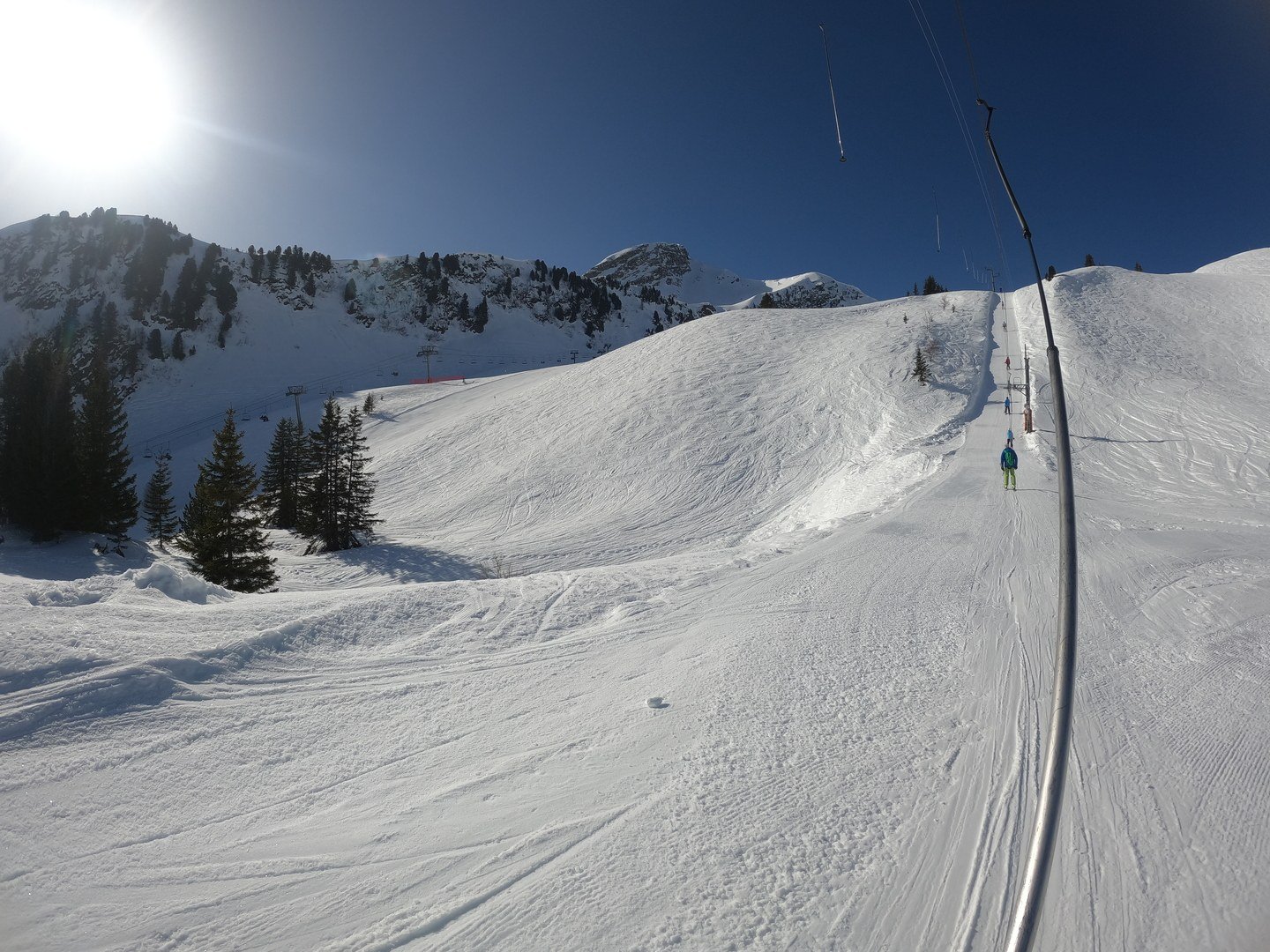 Hors-piste ? ben y'en a pas eu : neige méchamment croutée et je ne vais pas me risqué a sortir avec des ski si éloigné de mes Volk habituel.