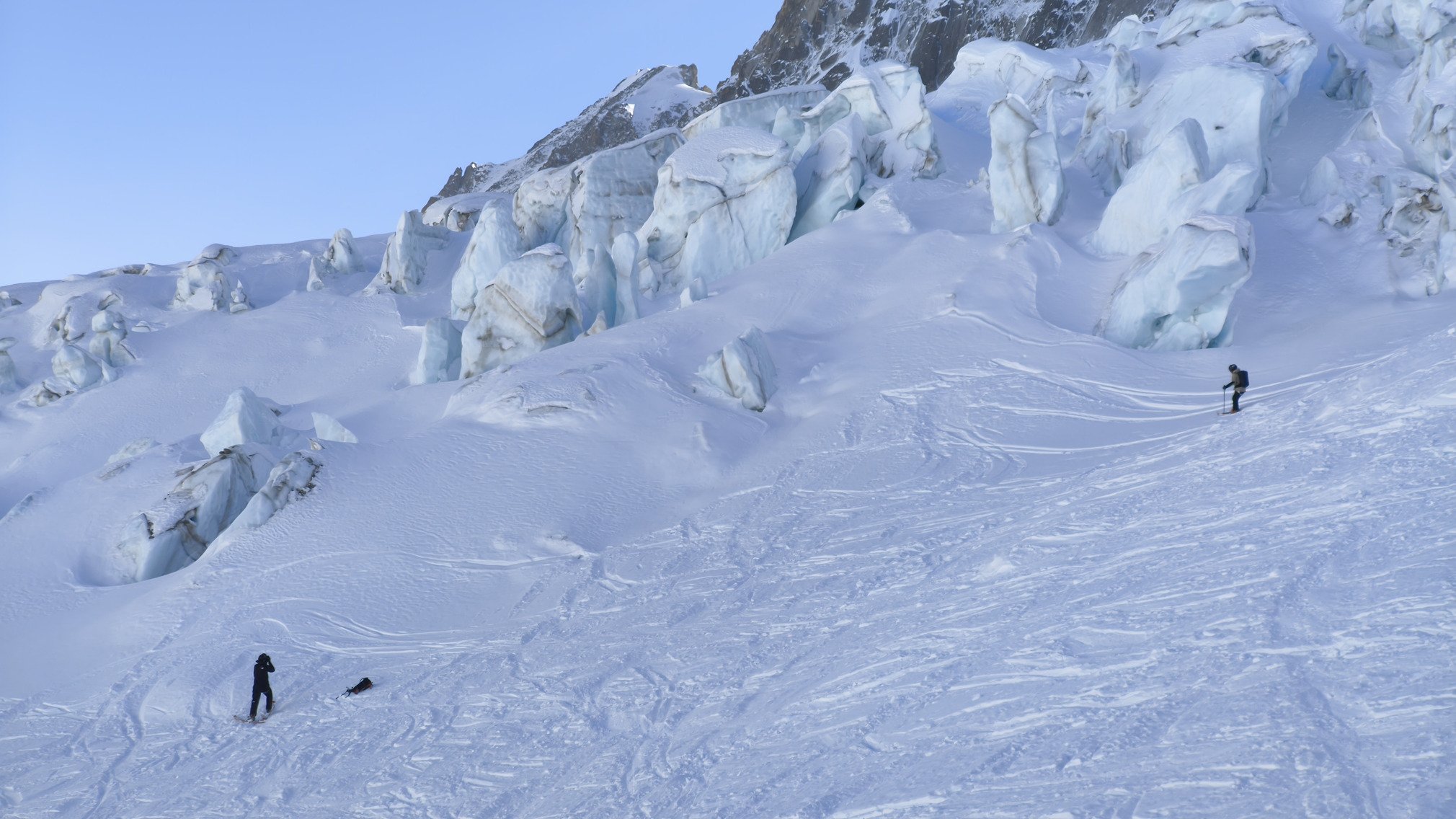 Côté bassin d'argentiere, on trouve de la neige froide et agréable a skier,tout bien sous le beau temps (et les nuages de sable...)