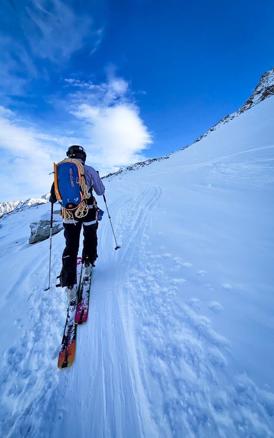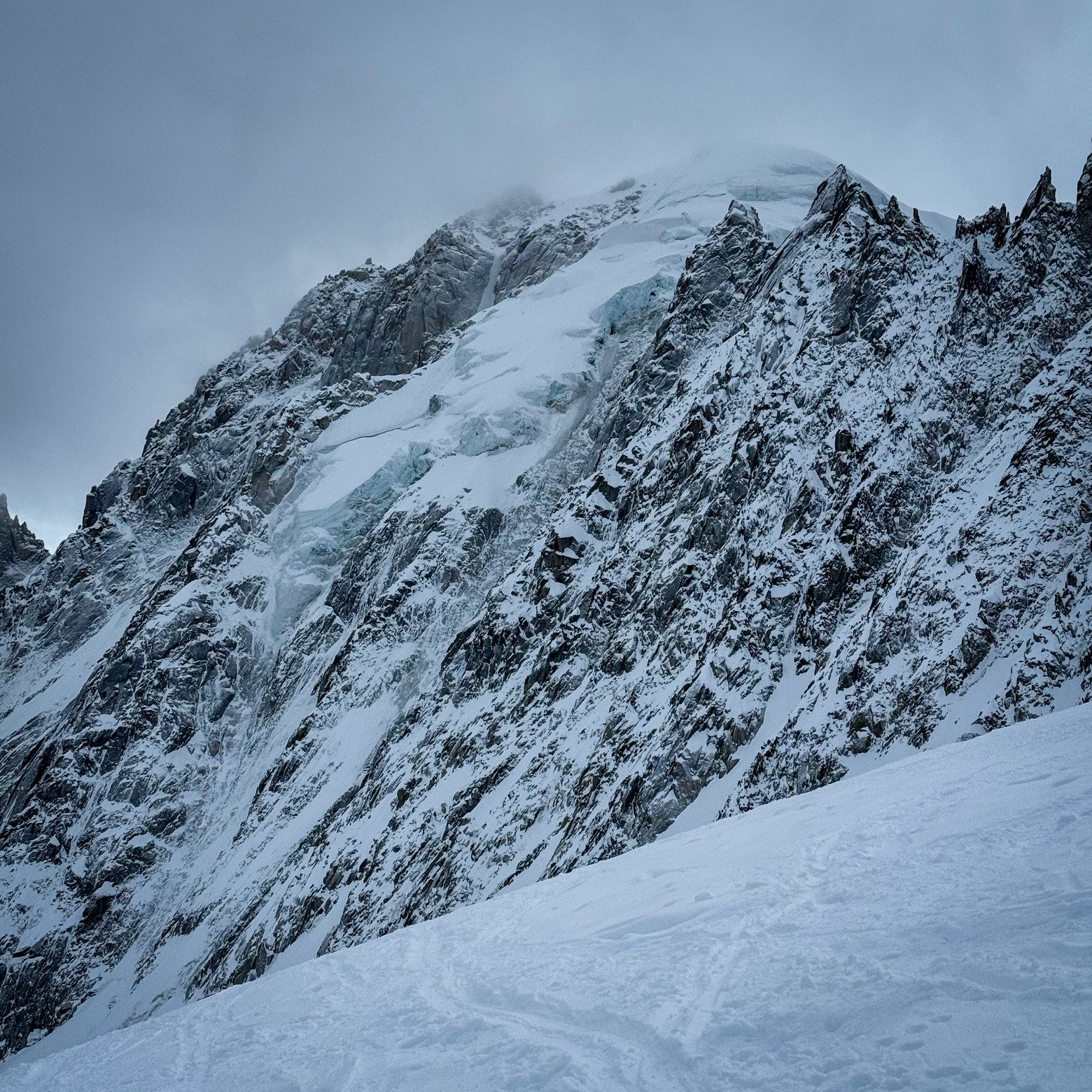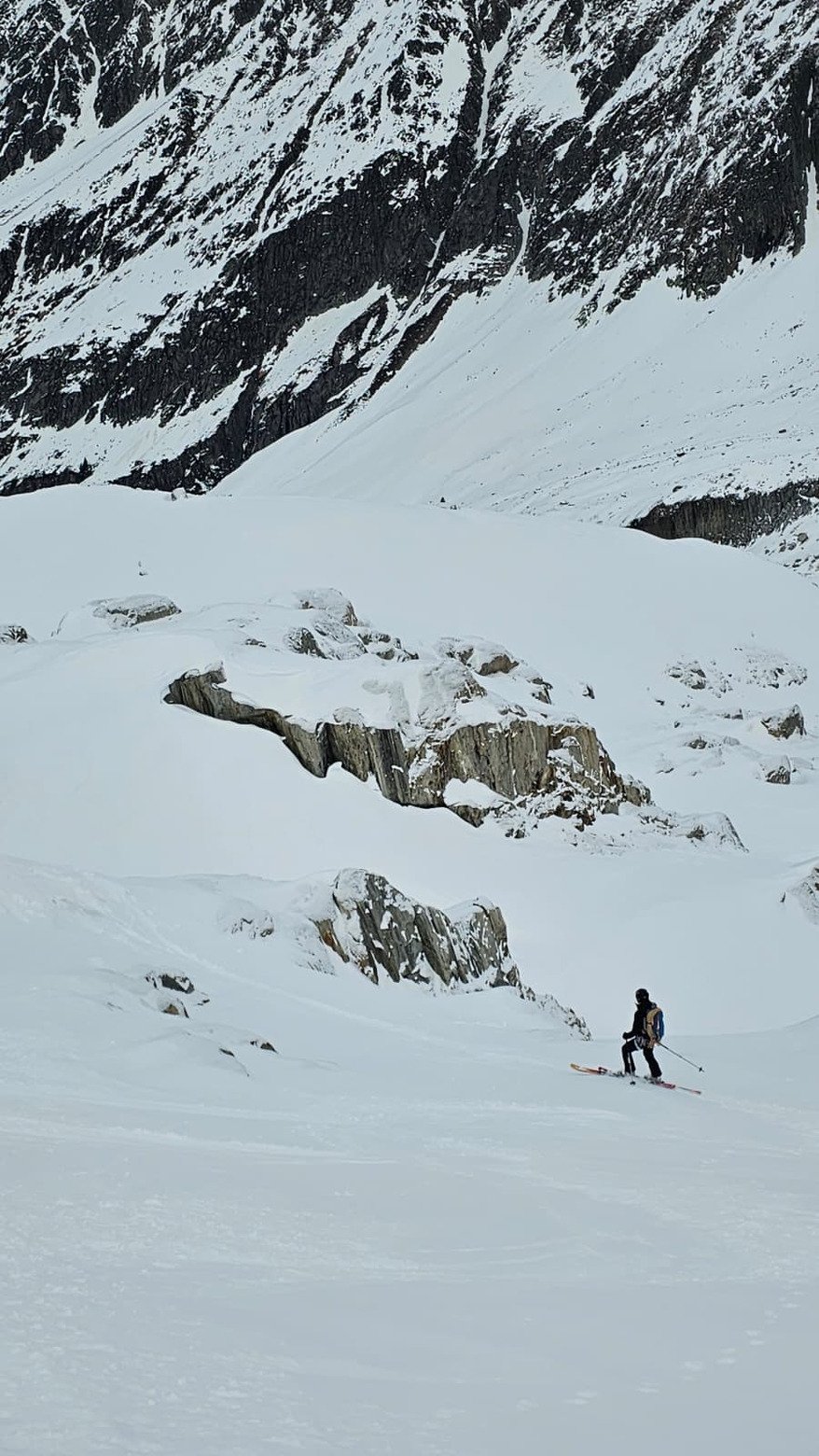 Mais le haut n’était pas dégueu ! Quelques centimètres de neige fraîche sur une sous-couche dure, agréable à skier en dehors des vieilles traces. Et une vue magnifique 😻