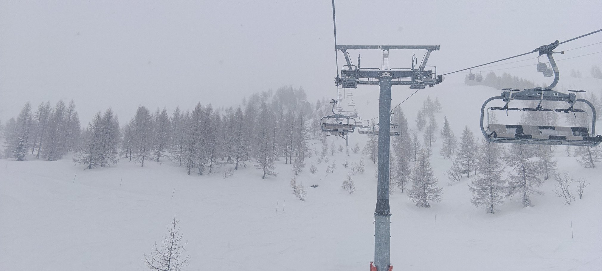 Ma dernière descente de la journée, avec l'enchaînement des noires Blanchots et Variante Hôtel depuis le sommet du TSD de la Herse était clairement celle de trop. N'ayant plus rien dans les cannes, j'étais incapable de skier assez vite pour flotter sur la poudreuse et je subissais chaque bosse ou presque 😂. Cétait à peine moins pire sur la Pierre à Ric, nettement moins agréable que le matin à cause des passages entre temps. Bref, je me suis laissé descendre avec la vivacité d'un mollusque 😂