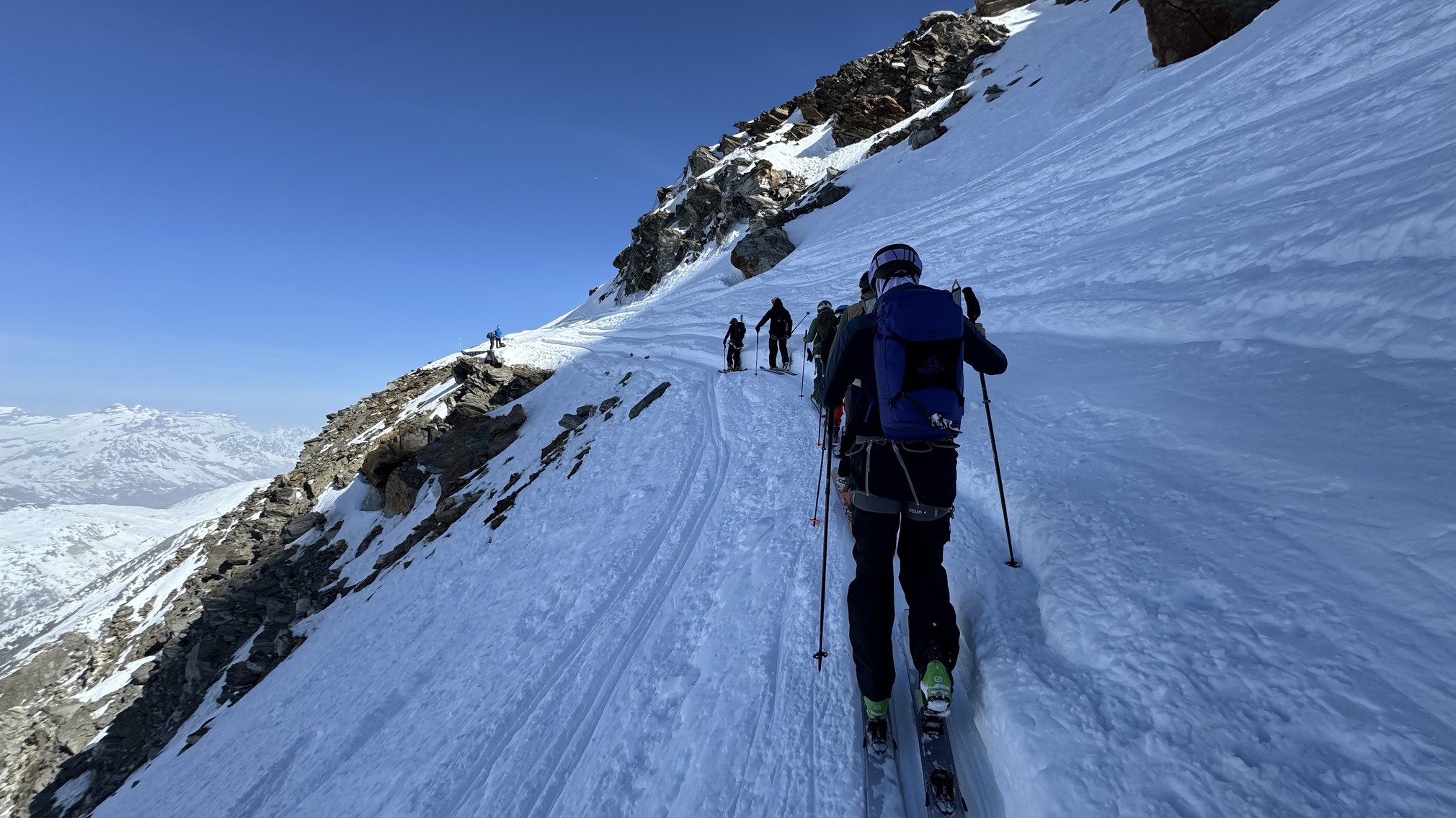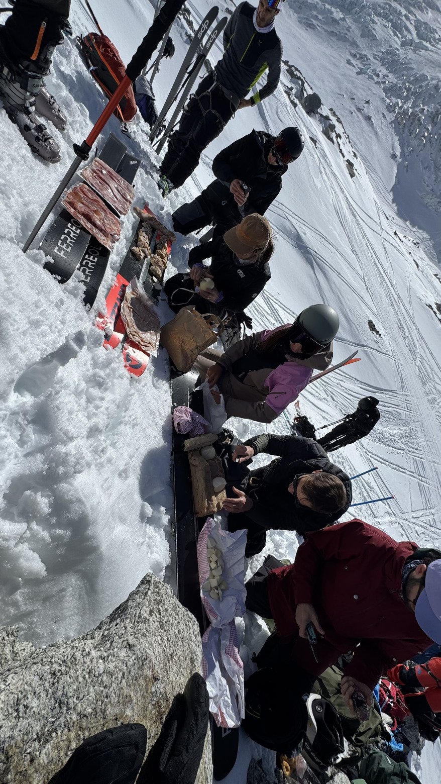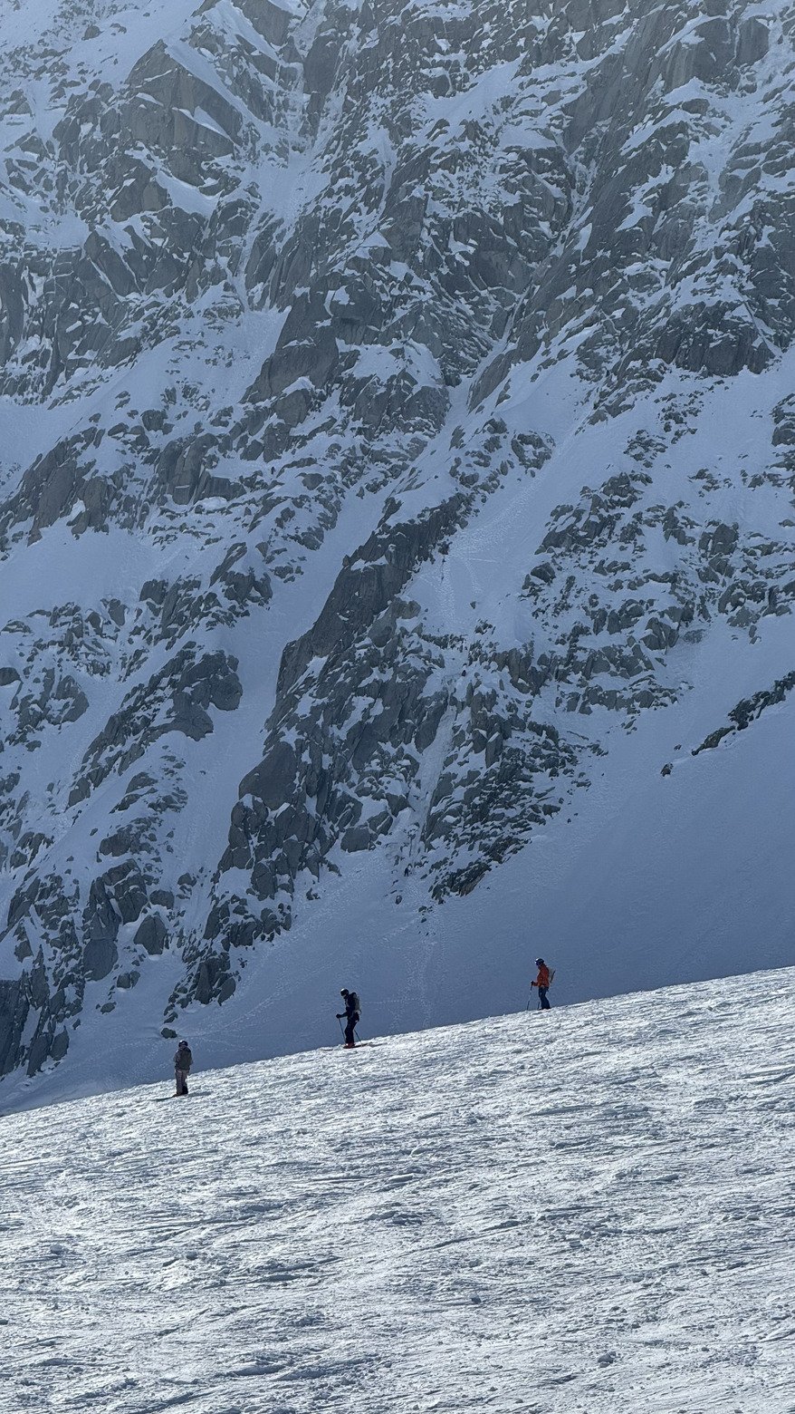 Petite balade donc aux rachasses avec une descente côté glacier (derrière le rognon). La montée passe encore très bien sans couteaux. La descente est meilleure de ce côté là que dans les hors-pistes bétons (le matin) des grands montets.