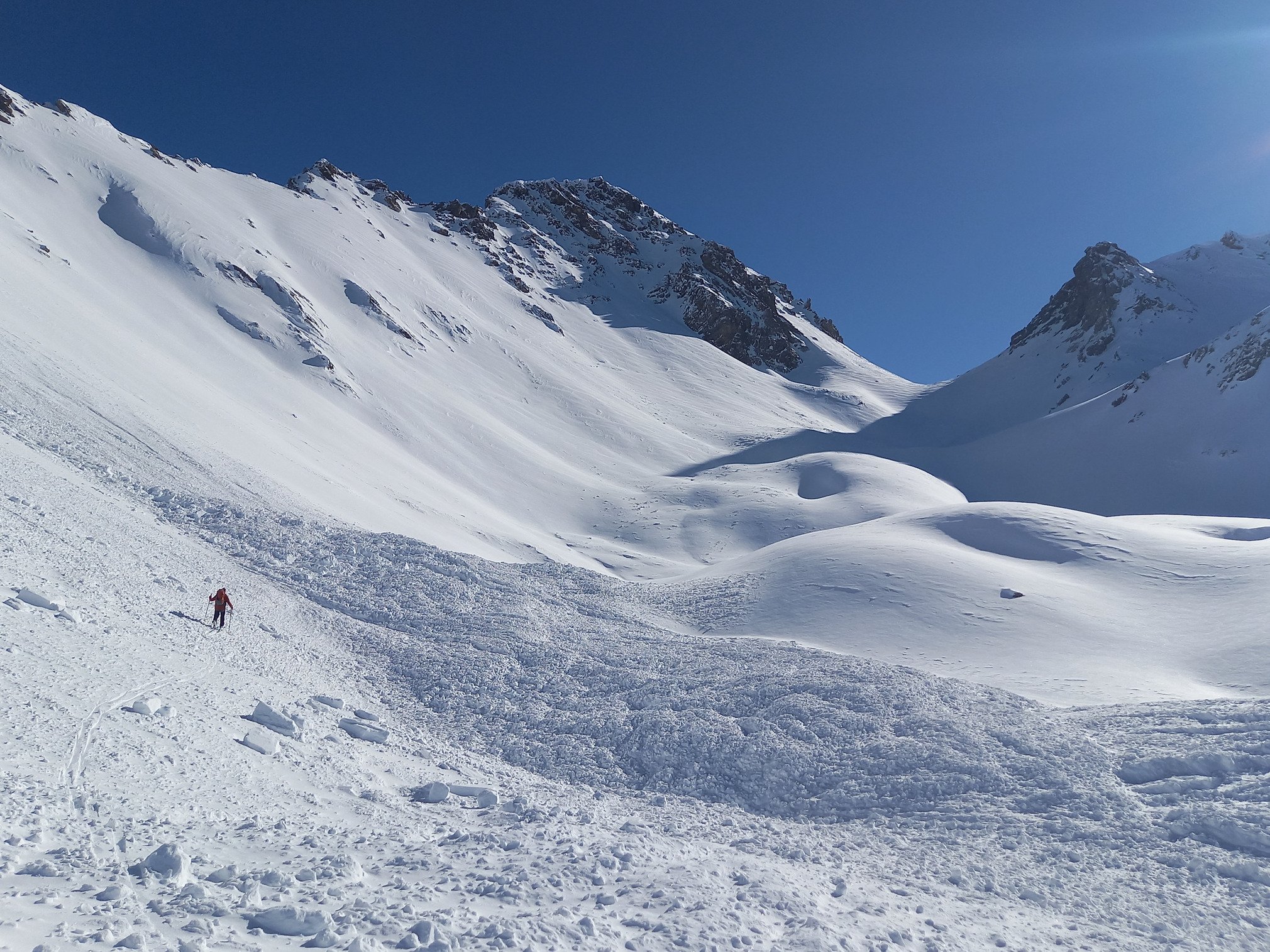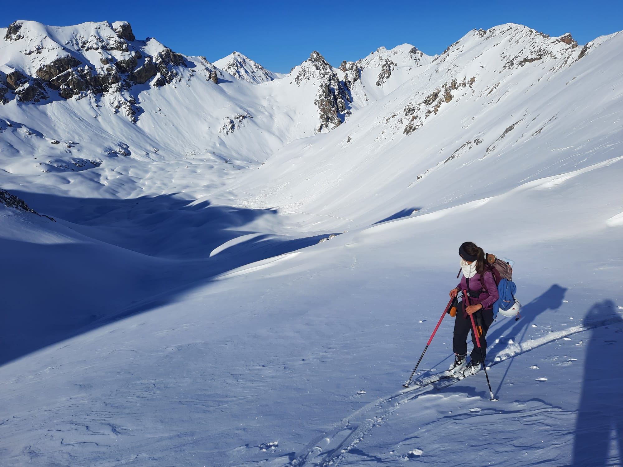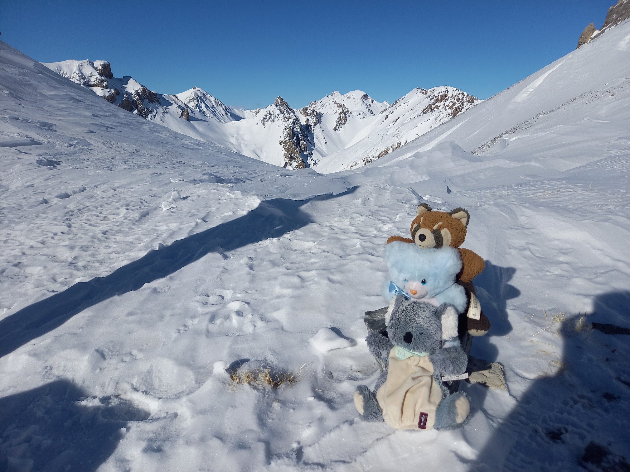 La montee est longue et physique, il faut tracer dans une belle épaisseur. De partout, on observe des coulées, des grosses des petites, des jolies formes façonnées par le vent, vagues, champignons...