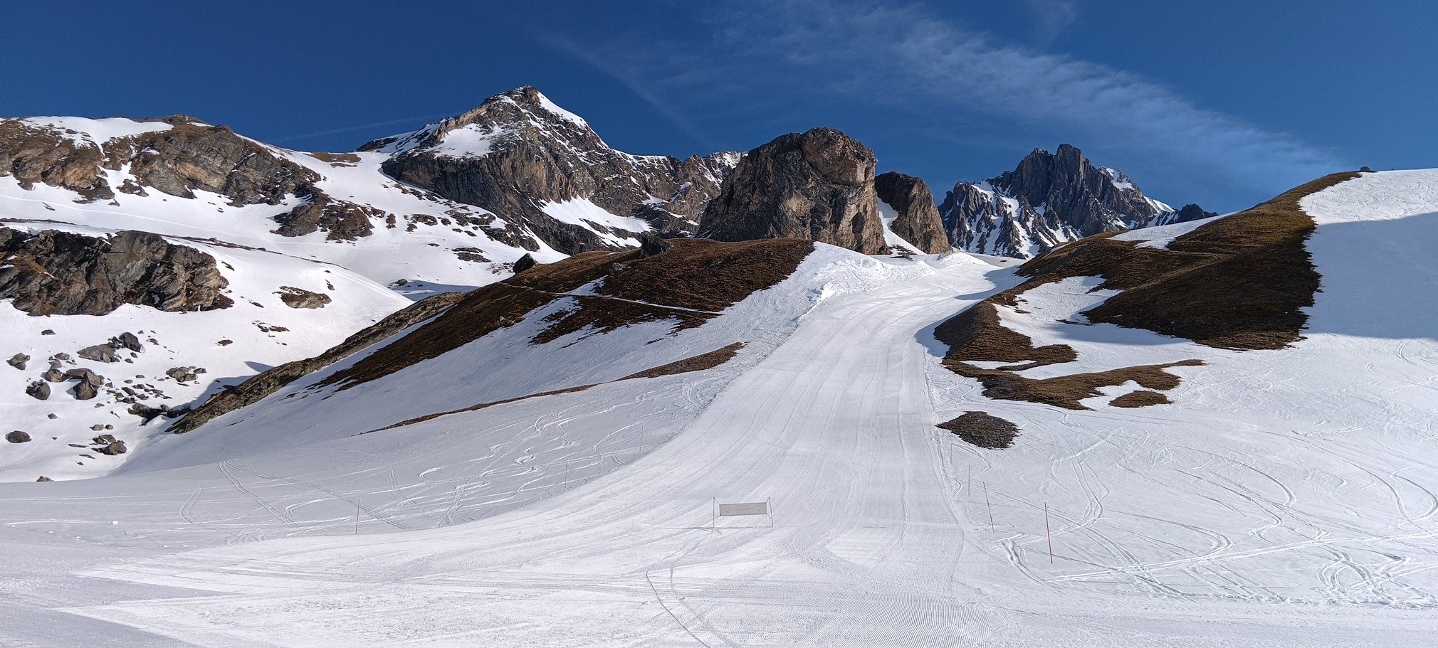 Un dernier petit repeautage de 100 m à peine pour rejoindre la piste Chamois, et j'entame la redescente à la station. Hormis quelques très bons virages sur le haut du stade de slalom de Plan Sec (parce qu'il reste les traces de damage encore intactes ou presque), ce n'est franchement pas terrible, collant à souhait. Un peu moins pire sur les pistes à canon, comme la bleue Ortet, à condition de viser les parties les plus décapées par les passages.