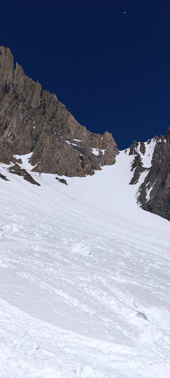 Le couloir (de la Loza) qui suit également, grâce au "damage" de nos prédécesseurs (une quinzaine de personnes). Alors qu'en montant je craignais un ski vraiment pas top à cause des nombreuses boulettes d'avalanche de ces derniers jours, au final c'est une bonne neige revenue qui reste assez rapide et régulière.