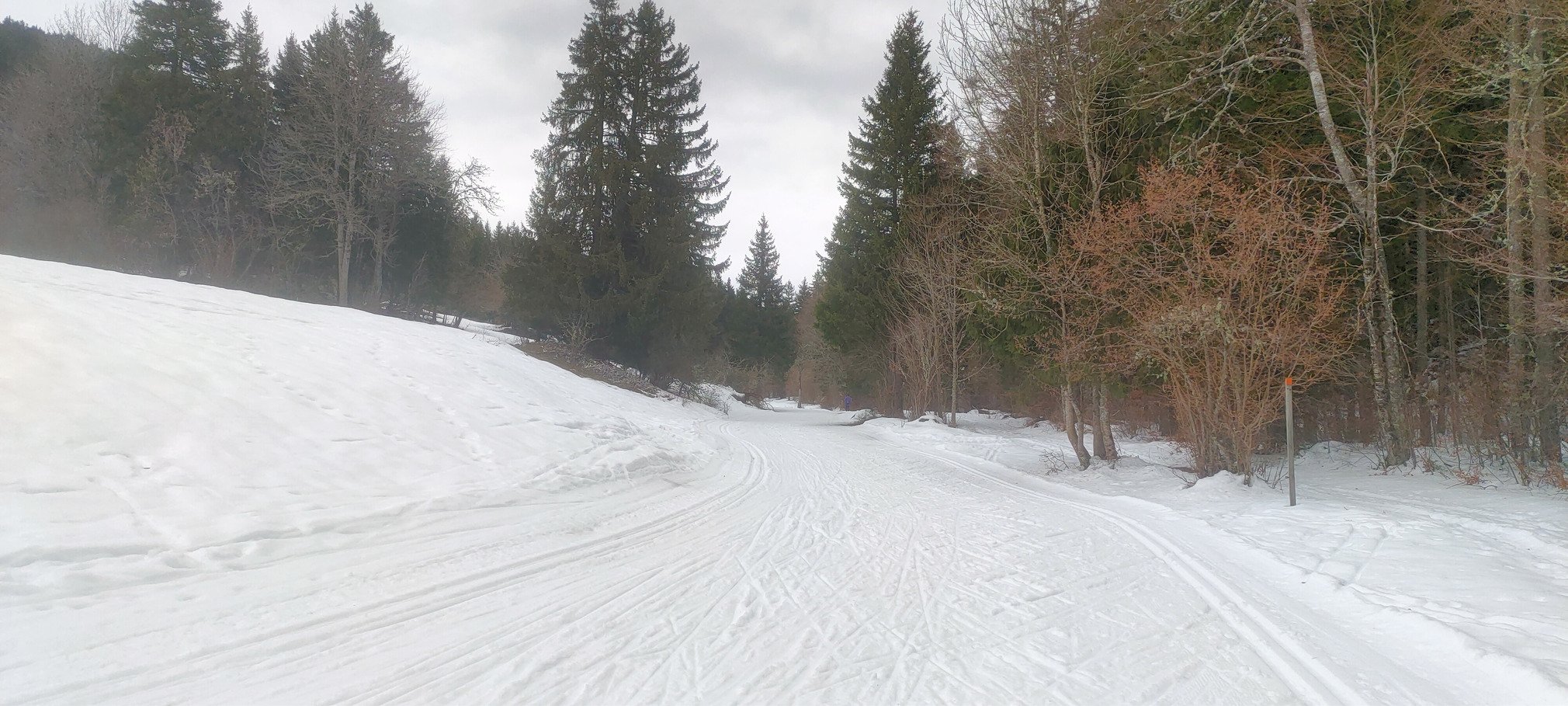 Décidément, j'ai le nez creux sur le choix des skis pour mes sorties en fond cet hiver. Après avoir pris mes alternatifs l'autre jour à la Féclaz, alors que les conditions restaient dures (avec peu d'accroche dans les rails), cette fois j'ai opté pour les skating alors que la neige est bien molle. 😂 Bref ç'aurait sans doute été mieux en classique aujourd'hui.