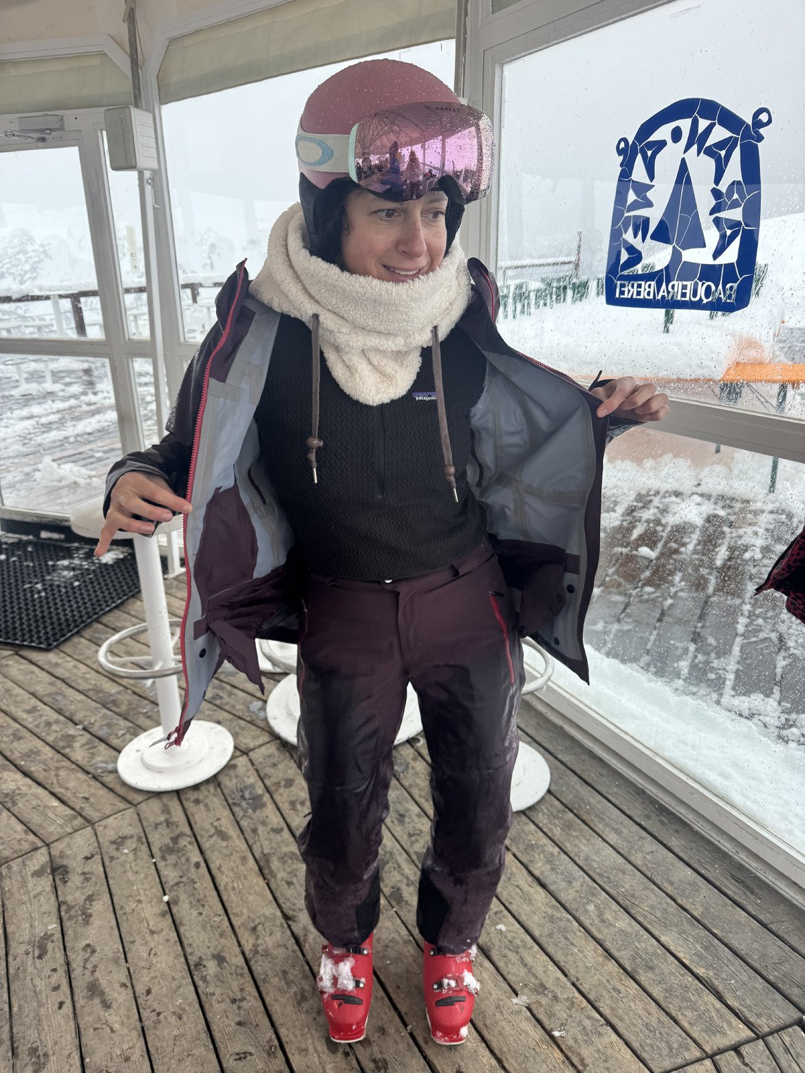 Résultat on se réfugie boire un café en haut du télésiège Blaniblhar, le temps de d’essorer et vérifier que l’étanchéité de ma tenue TP Columbia est toujours aussi bonne.