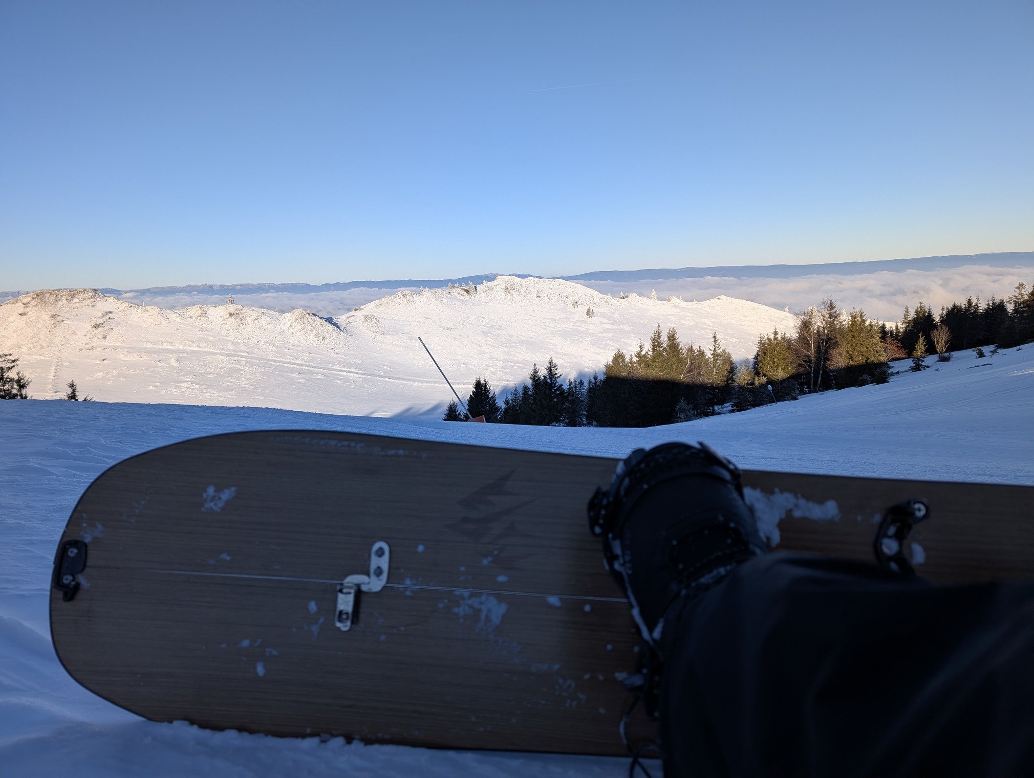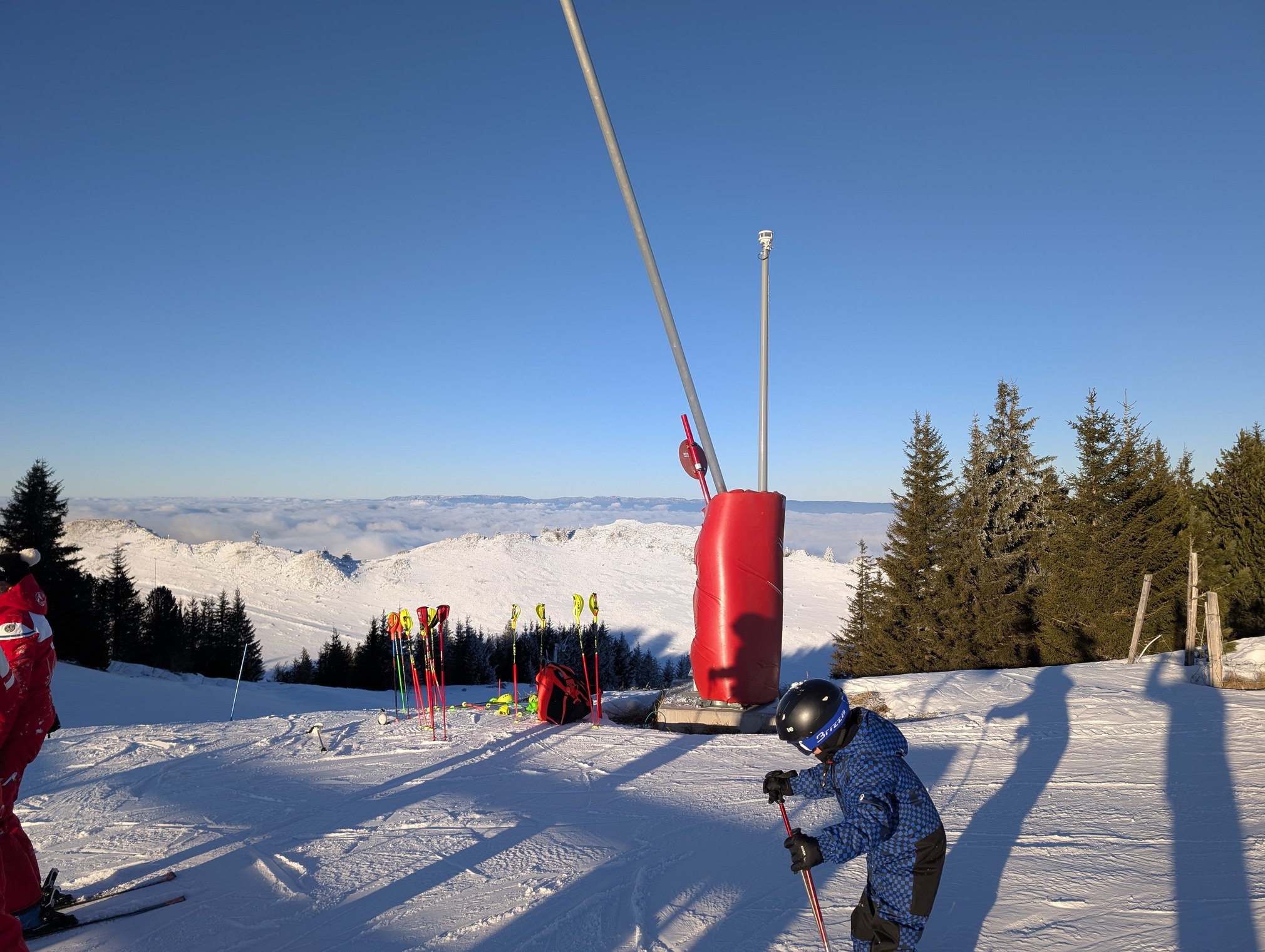 Bise au sommet, plafond du stratus changeant.. jour blanc en bas de la station, ciel bleu au sommet.