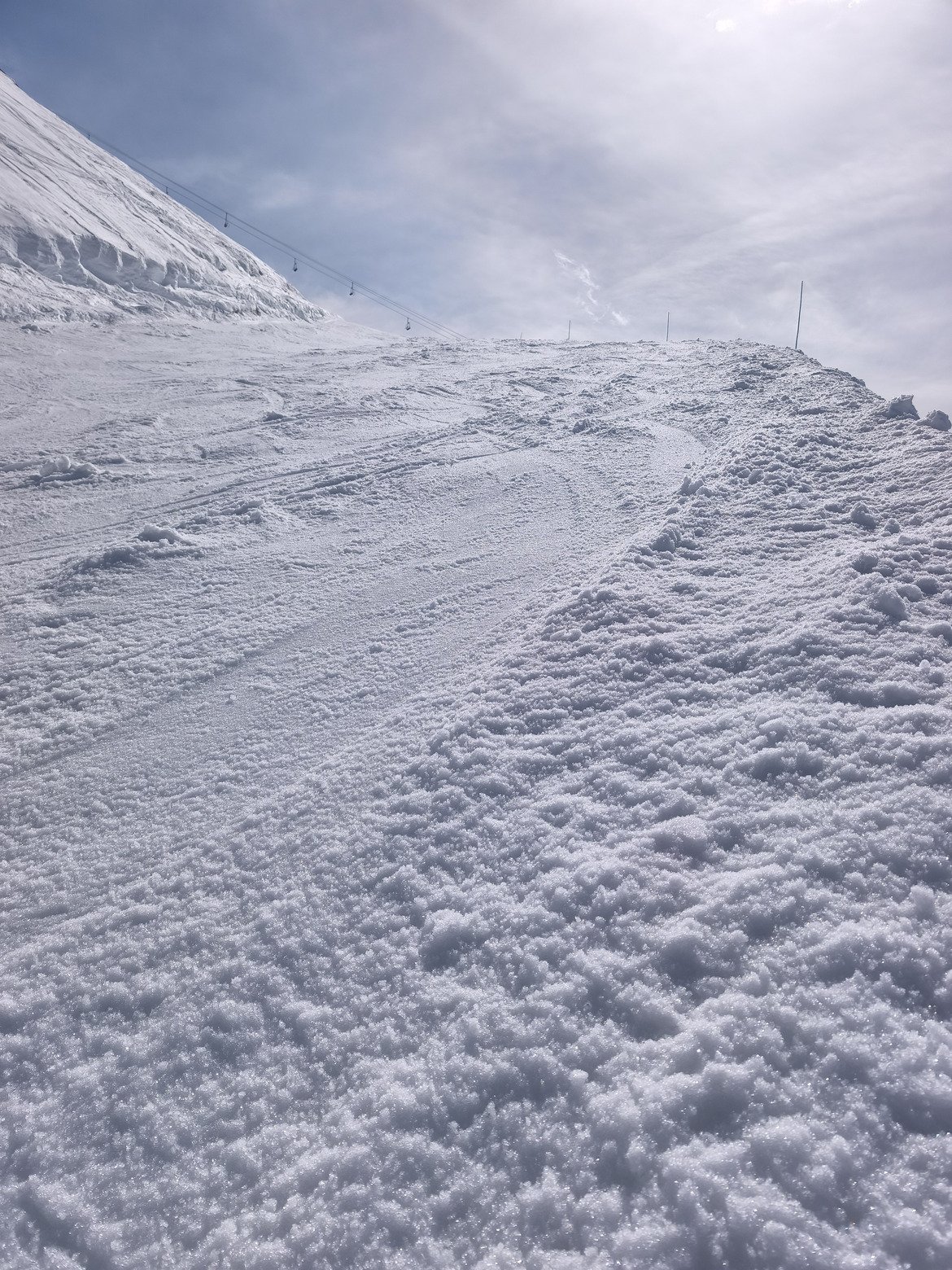 C'est une chance incroyable de trouver de la bonne neige partout voire même dure l'aprem sur les pistes du secteur d'altitude :