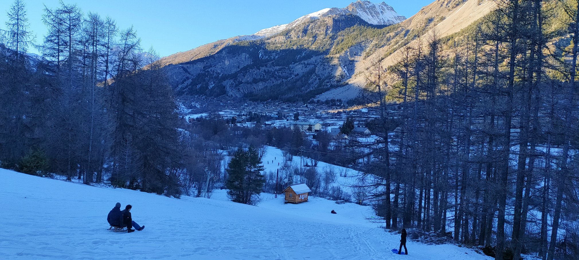 L'idée était d'aller chercher la poudreuse dans le Bois Noir, au-dessus du petit téléski éponyme, à Névache. Puisque le départ est quand même à 1600 m, que les Hautes Alpes ont bénéficié d'un retour d'Est la semaine dernière et que cette rando est exposée plein Nord, je me disais que ça pouvait vraiment le faire. D'autant plus que le BERA du Thabor annonçait une limite d'enneigement skiable vers 1500/1600 m... "en ubac sur pente herbeuse et pistes forestière"... J'aurais dû davantage prêter attention à cette phrase, et à la suivante : "mais enneigement souvent faible sous 2000 m".