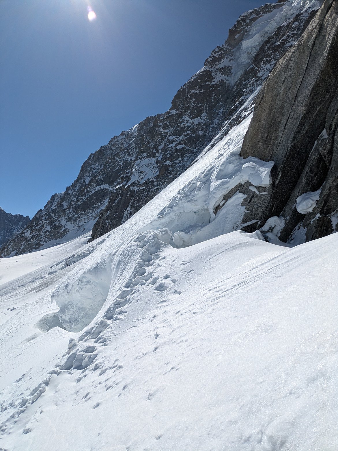Excellente descente sur le glacier d'argentiere à 11h, neige tip top.