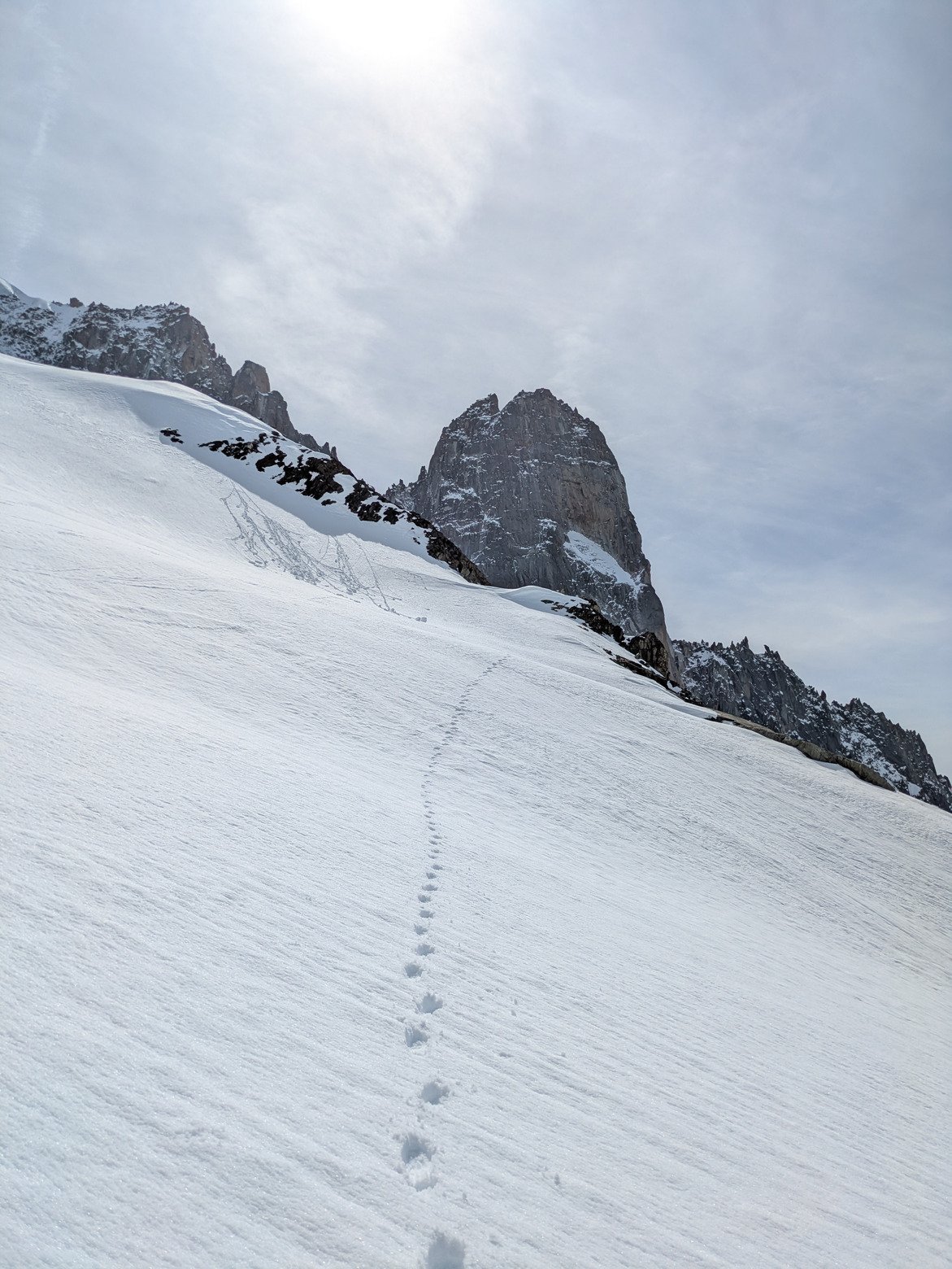 On remonte jusqu'au col des grands pour une descente côté glacier d'argentiere, dans une neige sympa : vieille poudre compactée sur le haut de l'ancienne piste point de vue, neige de printemps trafollée qui ne colle pas sur le bas. la pierre à ric à 14h30 était très sympa à skier également.