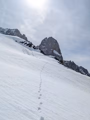 Comme expliqué par mon compère Booz, le but de la journée était de s'éloigner des foules pour aller tenter en boucle le pas de chèvre avec remontée par le couloir des poubelles. Cet itinéraire était un itinéraire classique quand j'étais ado, plus du tout maintenant. On monte par la face, descente dans une neige béton mais ça skie, jusqu'à ce que ça ne skie plus :D