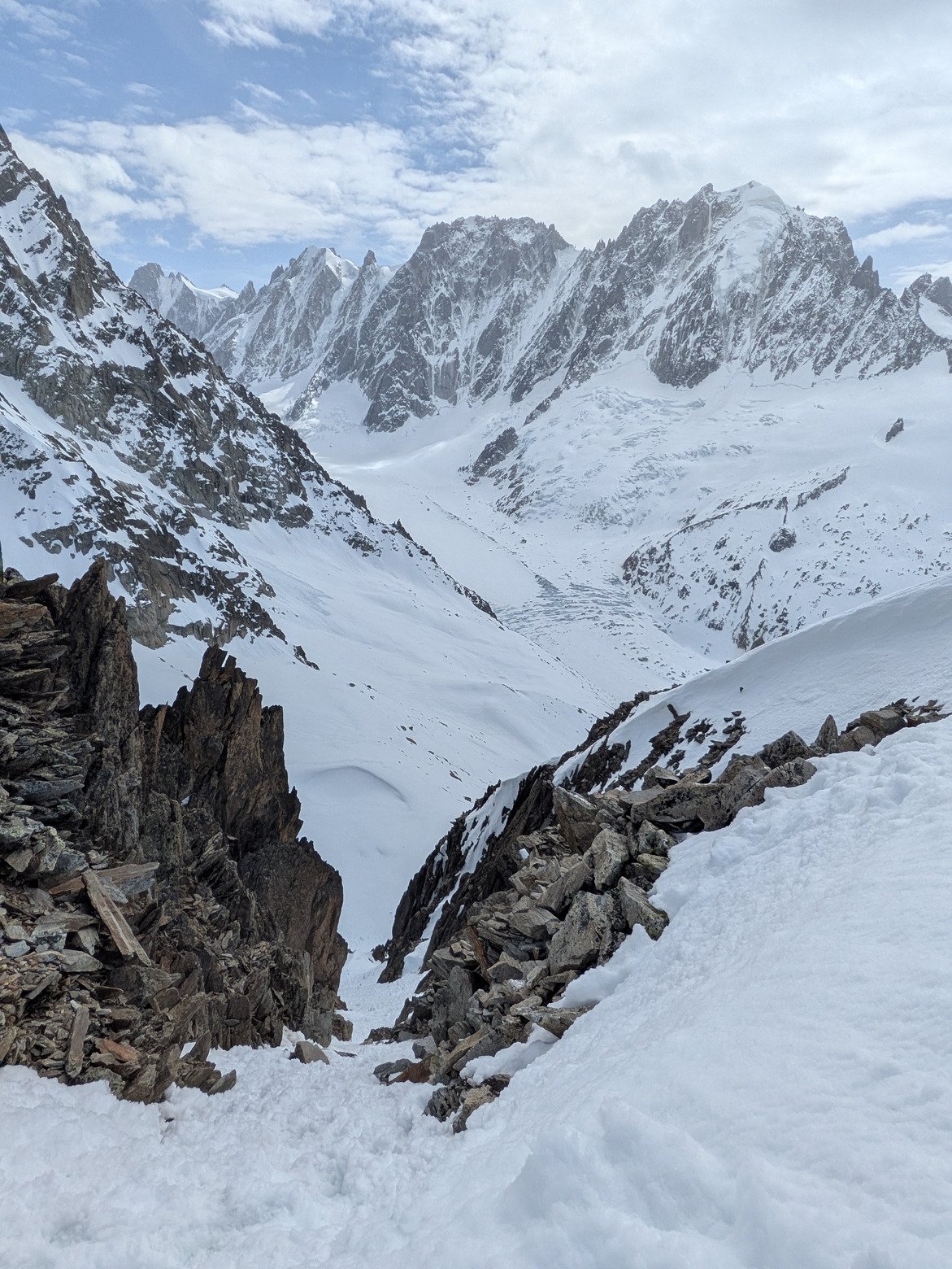 C'est toujours aussi sympa de faire le passon, en 850 de d+ on découvre 2 bassins glaciers, celui d'argentiere et celui du Tour, avec en prime une remontée de couloir très sympa sans grosse expo