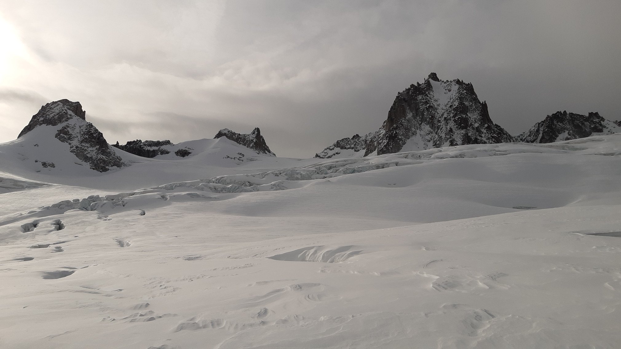 Ouverture retardée, mais ouverture quand même qui fait que j'ai pu descendre sereinement vers la Vierge au milieu de crevasses bien bouchées.