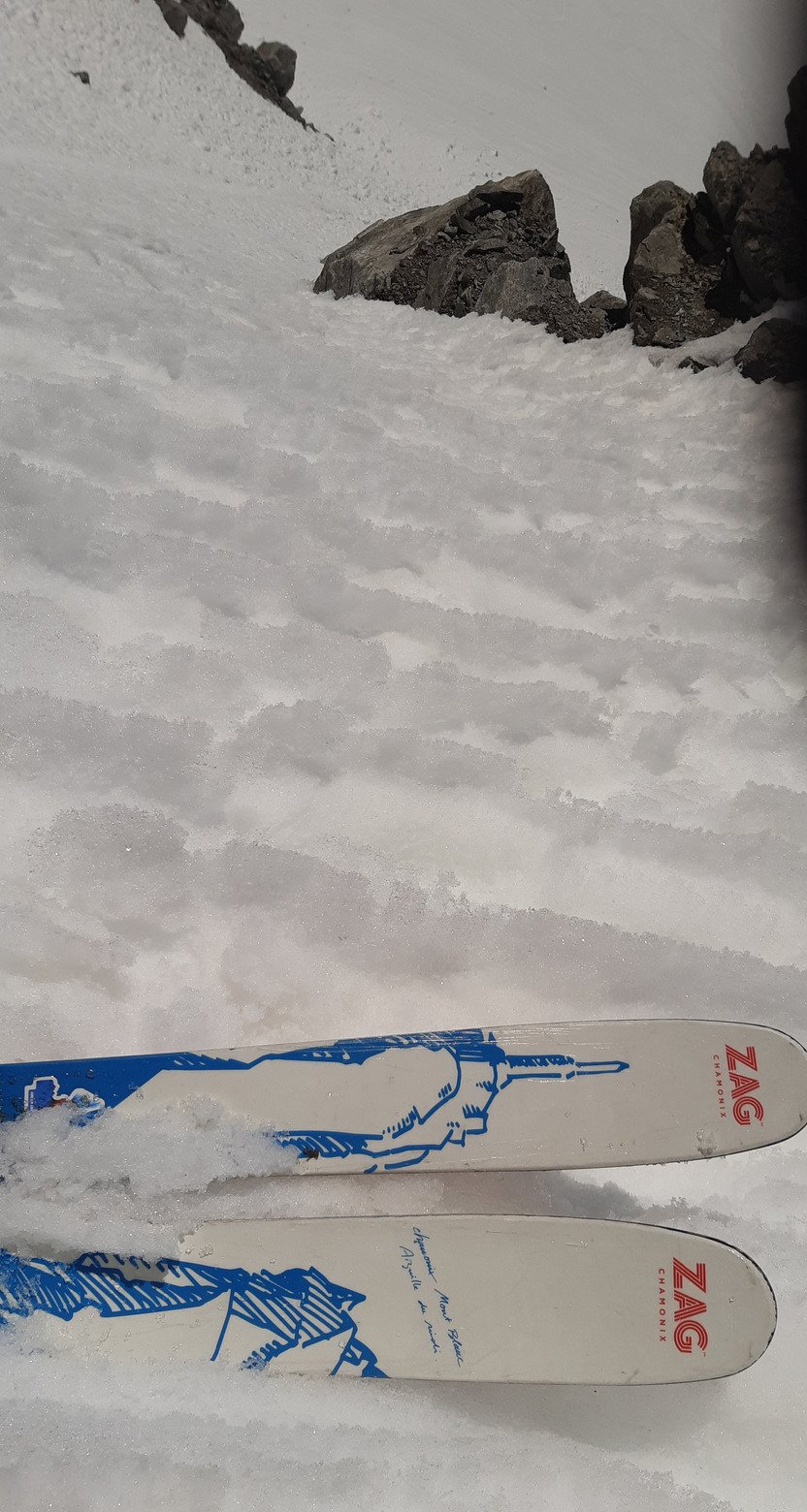 Je sais qu'un rappel que je n'ai jamais pris permet la bascule du col d'Argentiere. Il me semblait avoir trouvé le passage en grimpant un peu mais non, c'était pas ça.