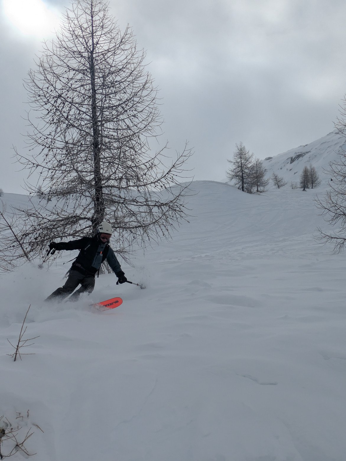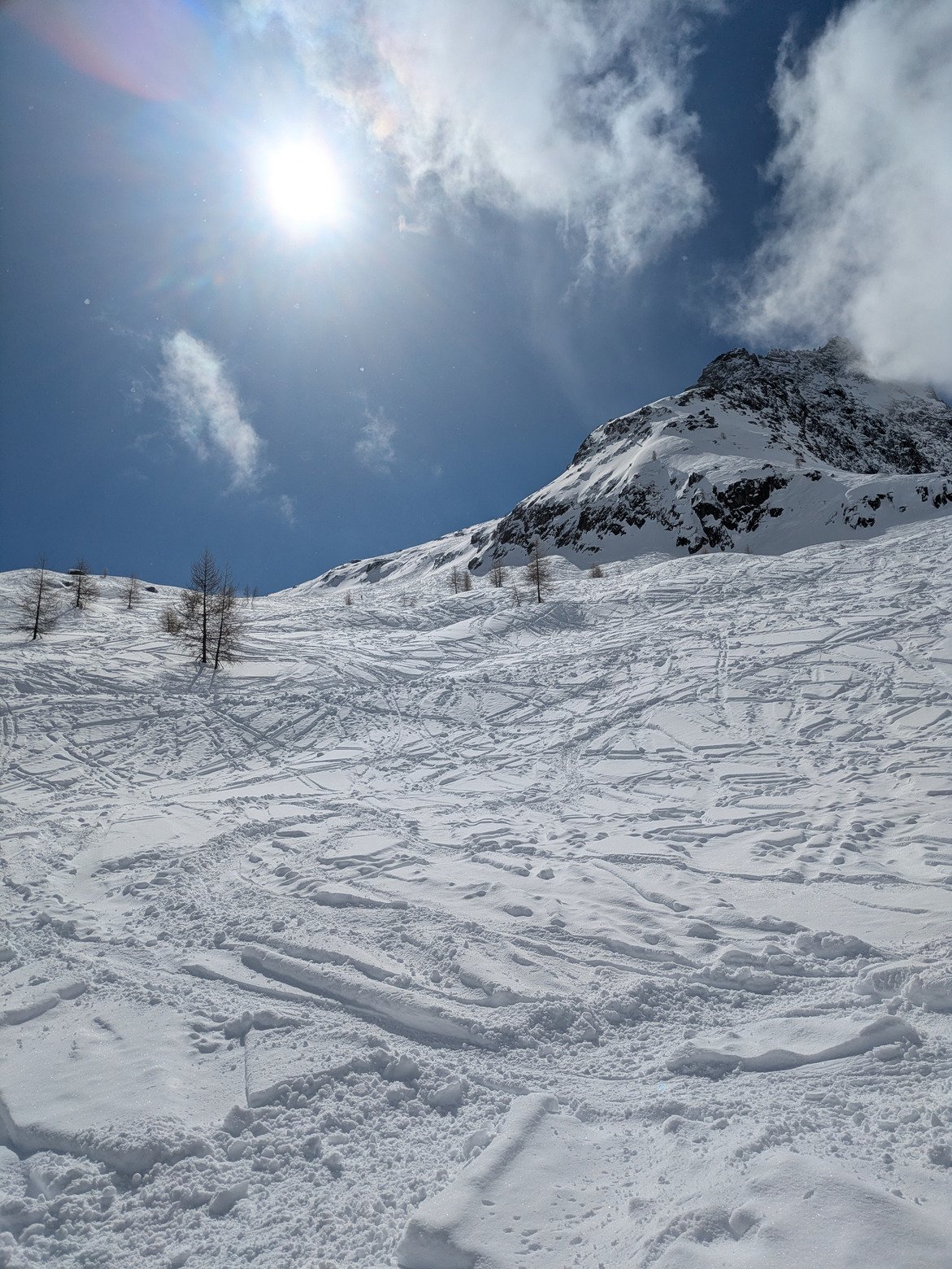 La combe de l'emhm est en top condition avec de la poudre trafollée, on l'a faite 3 fois dans le doute. Belle éclaircie autour de midi afin de profiter de la visi avant de revenir dans le nuage.