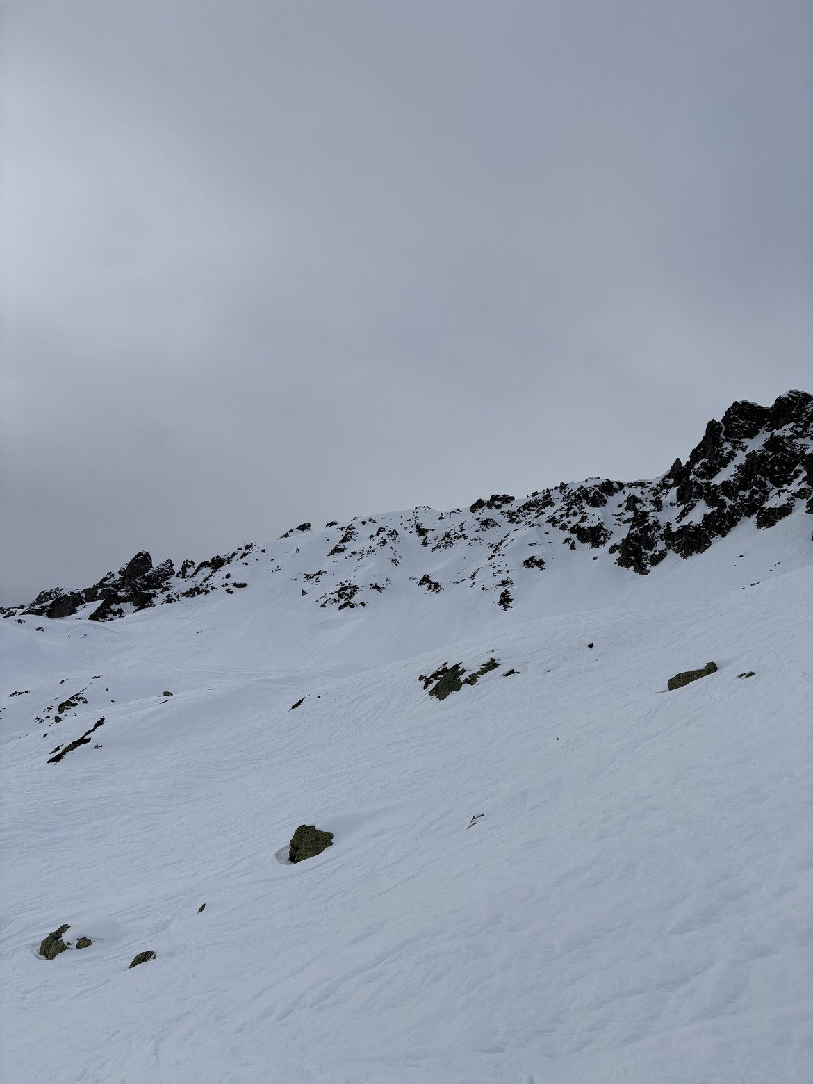 En hors-piste, là où la neige n’a pas été trop travaillée par le soleil ou le vent, on arrive encore à trouver de bons passages.