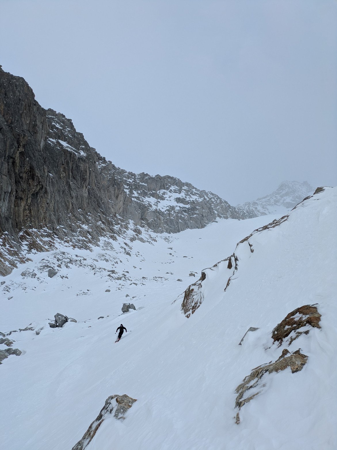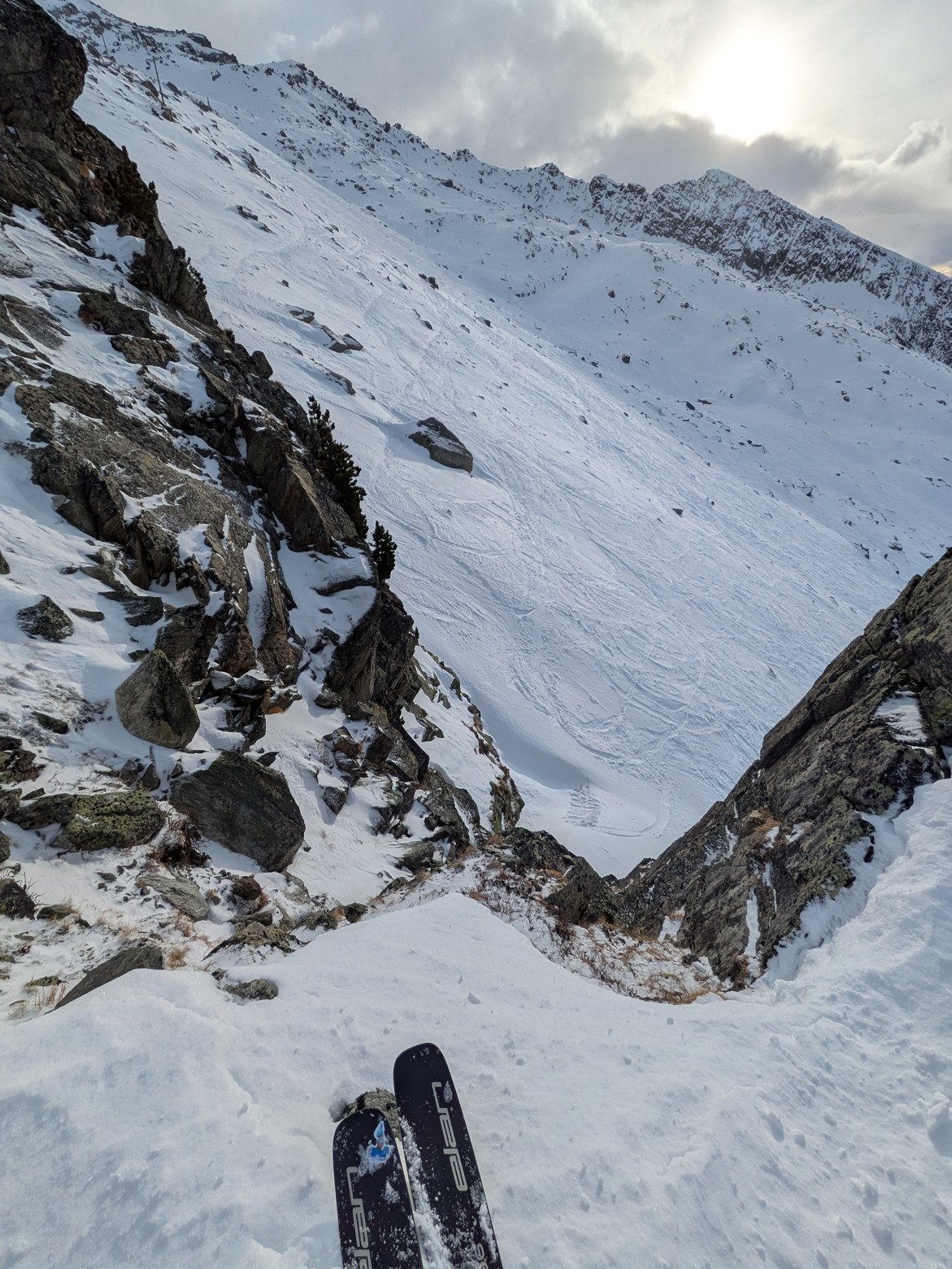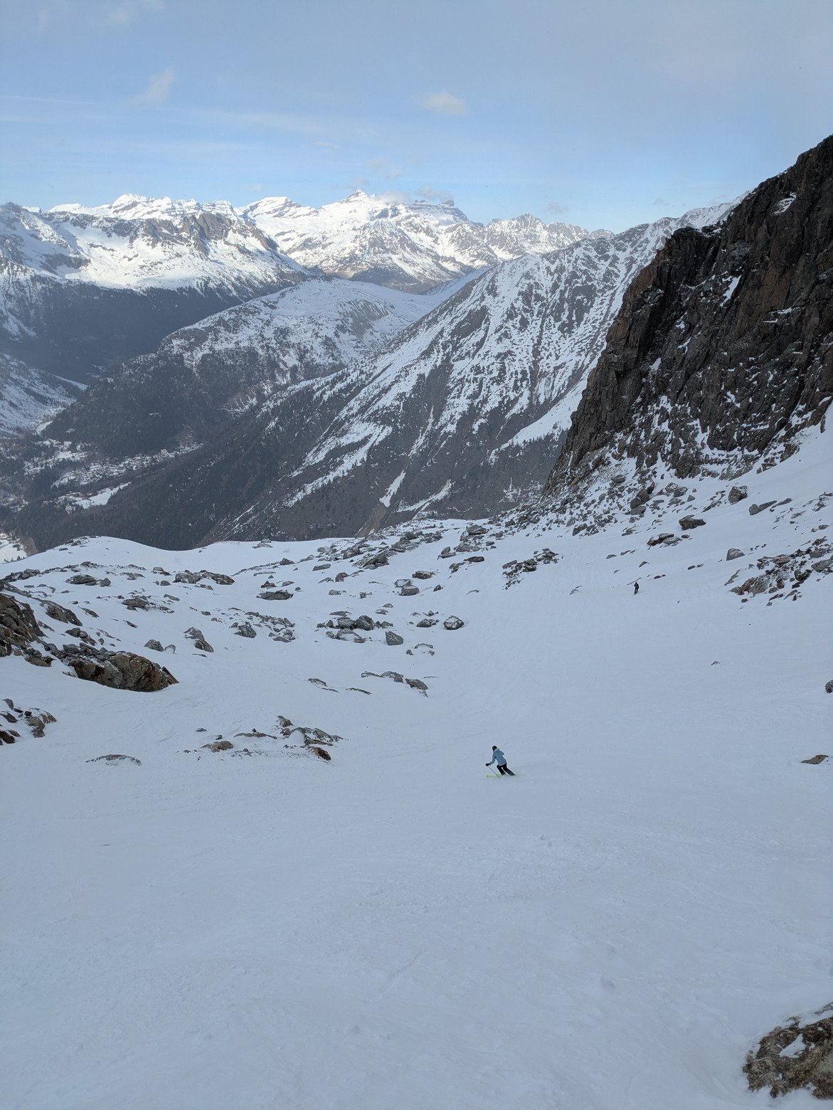 Les conditions en altitude sont pas si mauvaises, il y a plusieurs coins avec de la neige ferme sur laquelle une petite couche de 5cm est tombée, très sympa à skier.