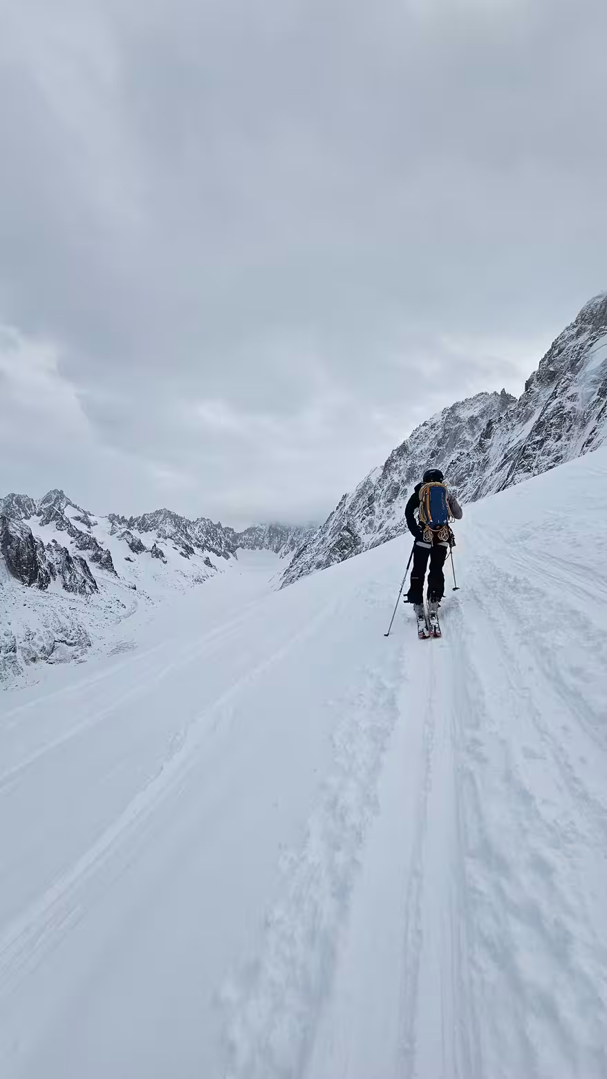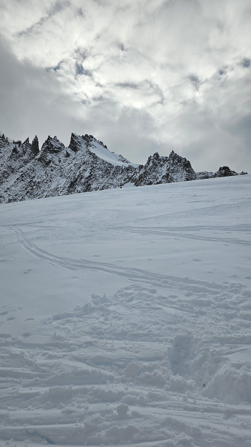 Montée tracée comme d’habitude, rien à signaler. En haut, quelques centimètres de fraîche qui font clairement plaisir. Descente sympa… jusqu’au retour en station : neige détrempée, puis gelée, puis cailloux. Le combo gagnant.