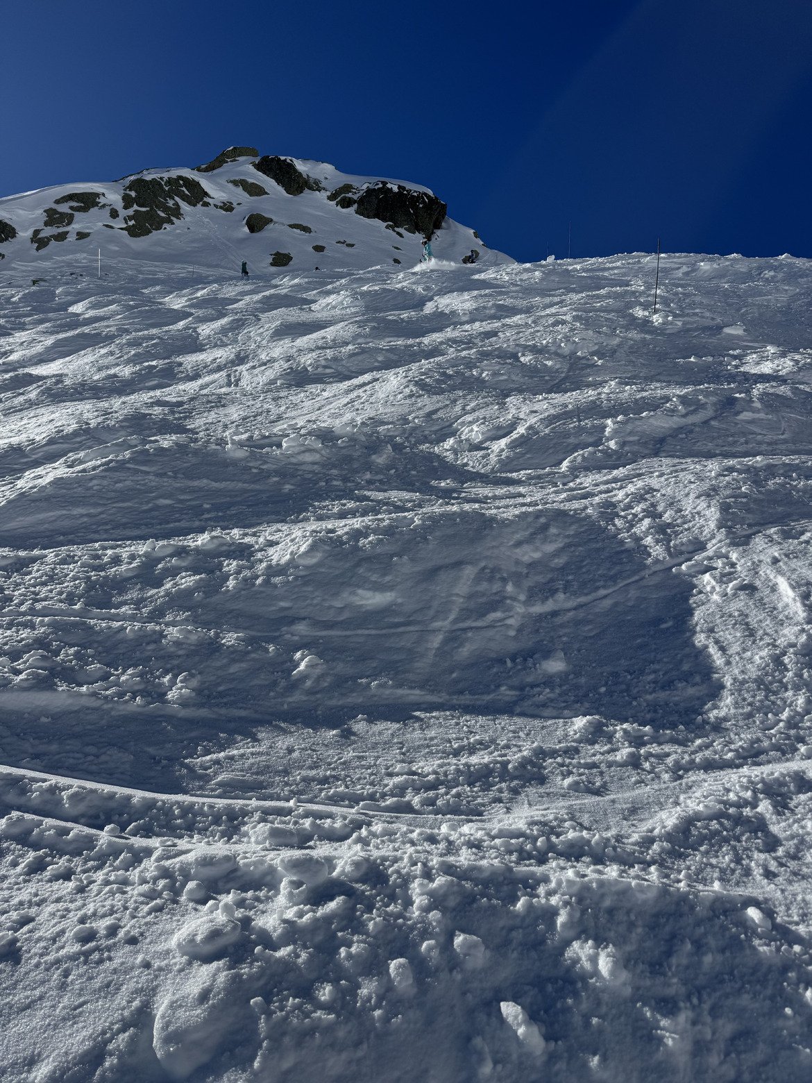 Rien de nouveau sur les conditions de neiges, toujours pas de fraßche en vue. Il faut faire attention sur les bas de pistes qui commencent à avoir pas mal de cailloux qui traßnent de partout. Le tk de la floria est ouvert et donne sur un piste non dammé pour se chauffer les cuisses dans les bosses.