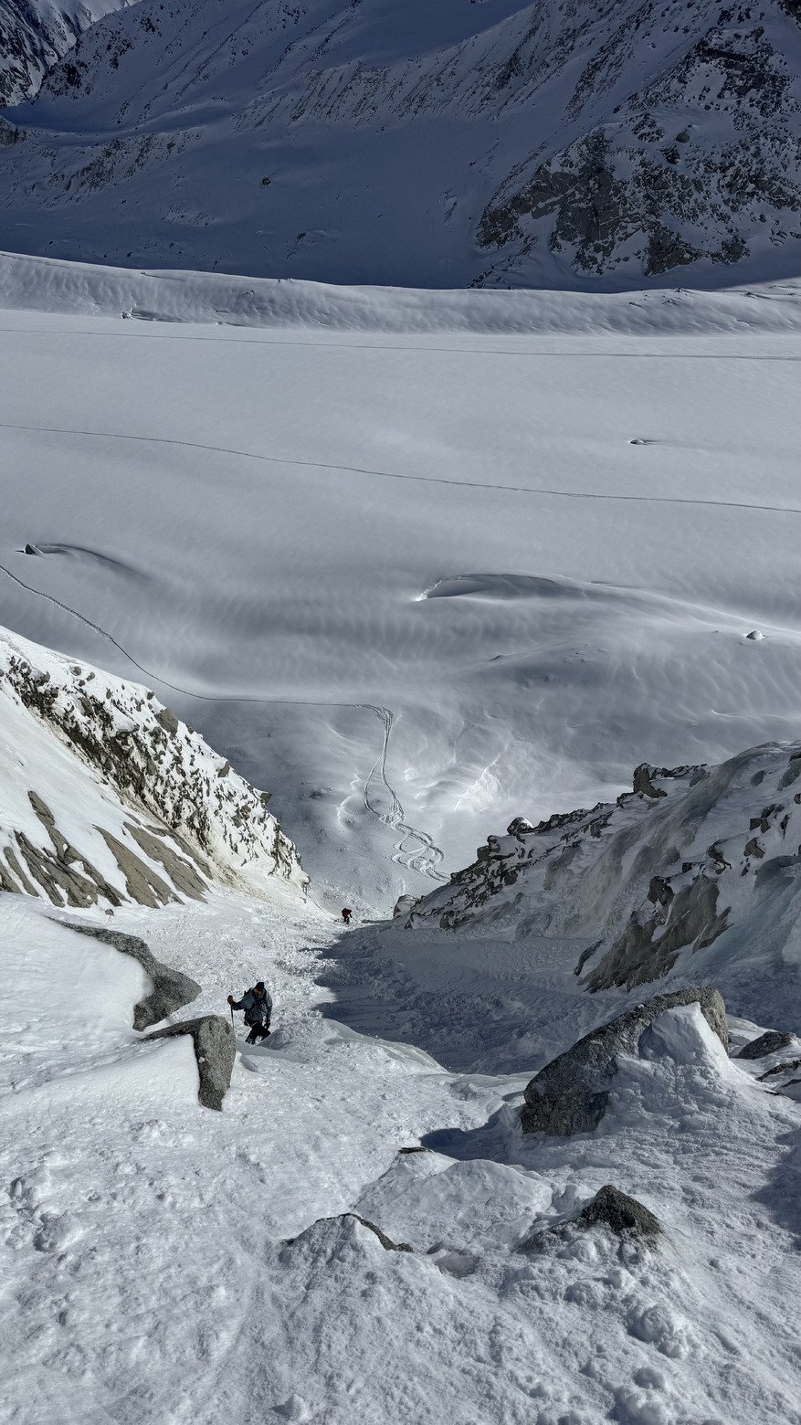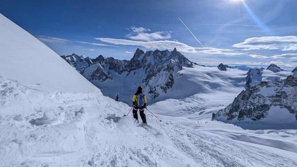 La belle et classique sortie du dimanche matin. Vallée blanche version mixé entre le moyen et le grand envers. Une réservation de dernière minute la veille au soir (comme d’hab 😂), une benne à 9h20 remplie de skieurs. C’est le rendez-vous ensoleillé de ces derniers dimanche.