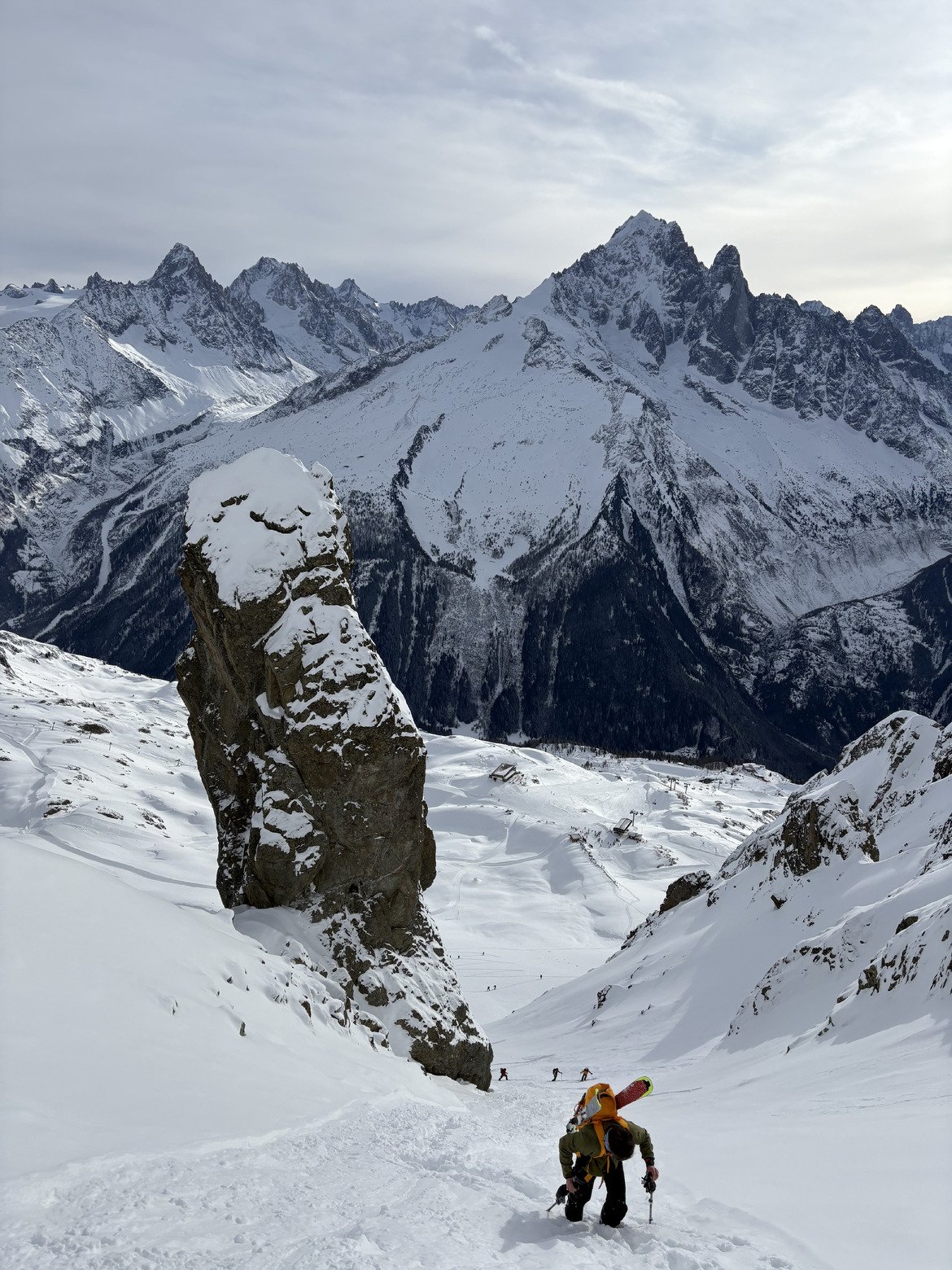 Côté Lachenal, le vent a bien fait son boulot : hors-piste ravagé et piste pas incroyable.