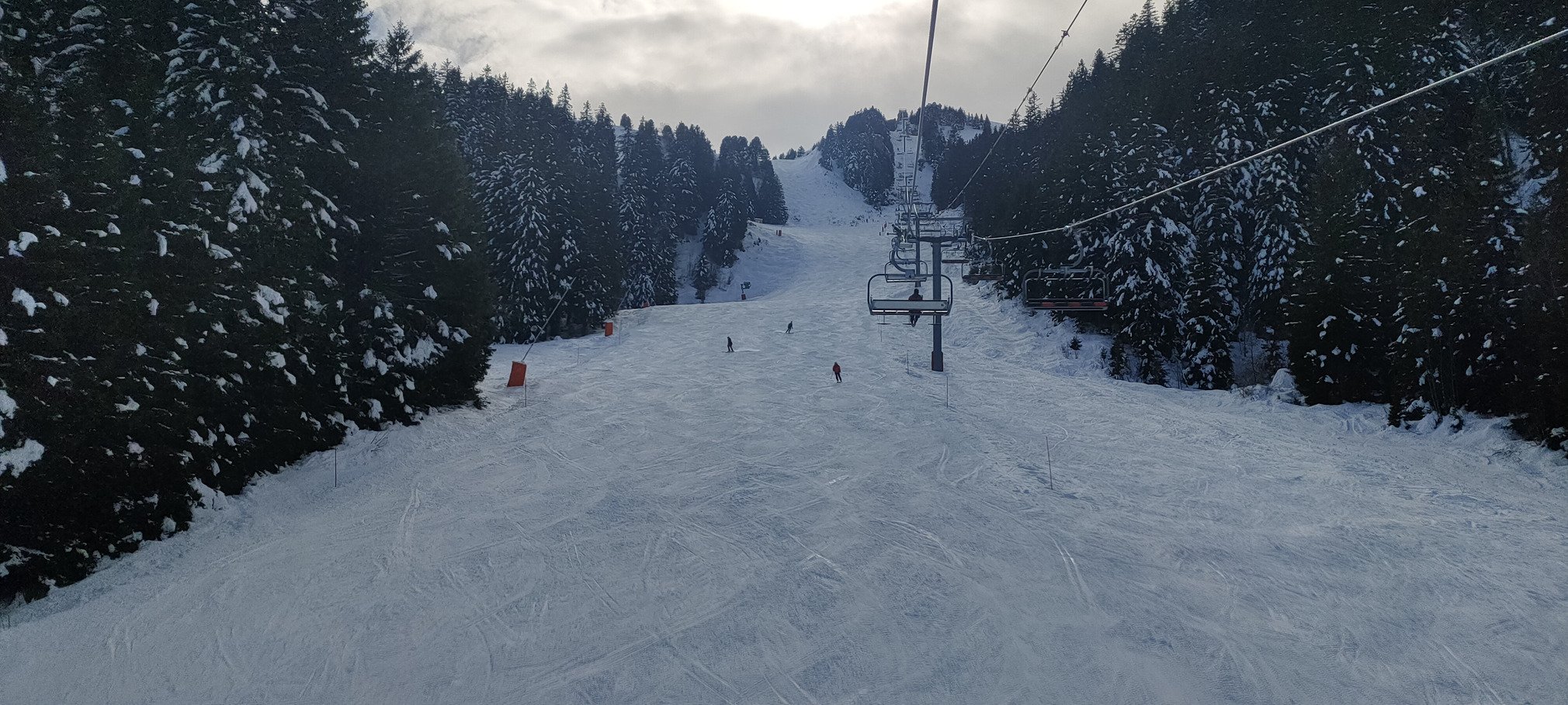 La suite sera plutôt meilleure, avec une neige légèrement revenue sans être soupe, qui est à mon goût bien plus adaptée au carving. Je me suis bien fait plaisir sur Schuss des Dames ou la Fusée notamment, malgré du monde sur les pistes par moments (avec un niveau moyen digne des vacances 🥴), même si on ne fait pas de queue aux remontées.