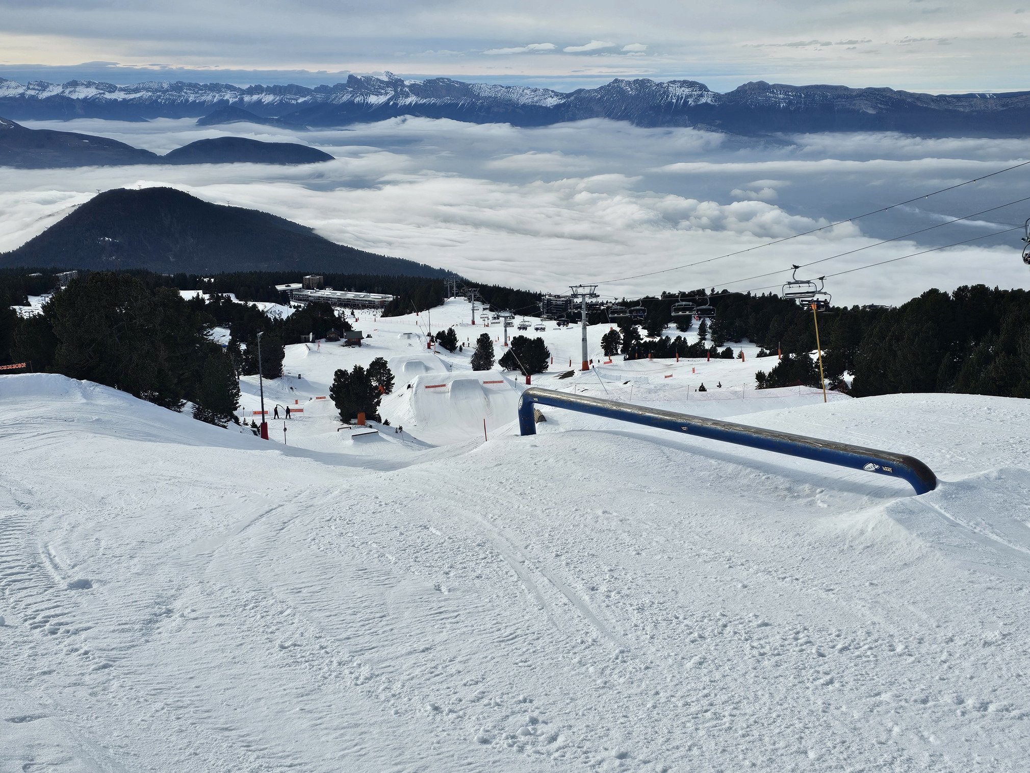Premier objectif une fois à la Croix : le TSD Casserousse, c’est parti pour (2250 – 1400) 850 mètres de dénivelé, top pour commencer. Piste noire Olympique Homme puis Olympique Dames (rouge) puis Liaison Casserousse pour rejoindre la piste Casserousse. Neige ok avec parfois du dur mais pas de plaque de verglas. Je descends tranquille avec mes skis Sender 100 Rossignol (je me dis que j’aurais peut-être dû prendre nos Hero Multi Turn). Mais bon, ça passe tranquillou sans être énervé (à la base, je suis snowbordeur). Arrivé à la piste Casserousse, ça se gâte. Il est annoncé peu de neige, du dur et à certains endroits du caillou. J’ai fait exprès d’aller voir le pire endroit du domaine en ce moment. Ca le fait mais vaut mieux considérer cette portion comme un retour station (si vous ne faite pas cette piste, en ce moment, vous rater pas grand-chose).