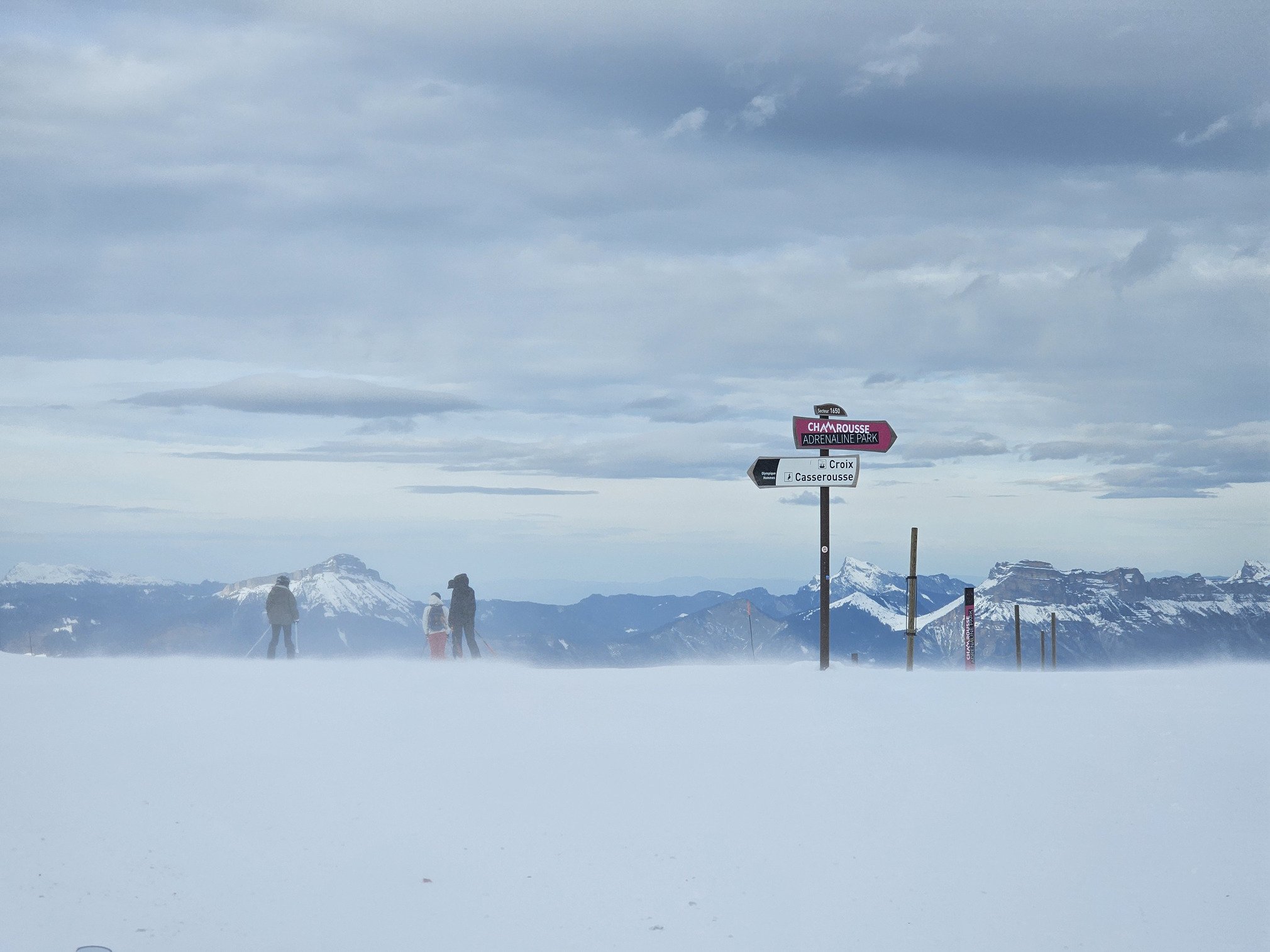 Une fois en haut, bon bin, pas ouf, il y a du vent. Secteur lacs Robert fermé. Fait pas froid. Je pense qu’aller direct sur la piste noire l’Olympique Hommes et s’abriter peut-être un bon plan. Des jeunes ont la même idée, ça vole un peu au début de la piste. Je fais un autre choix car je veux aller voir le secteur de Roche Béranger.