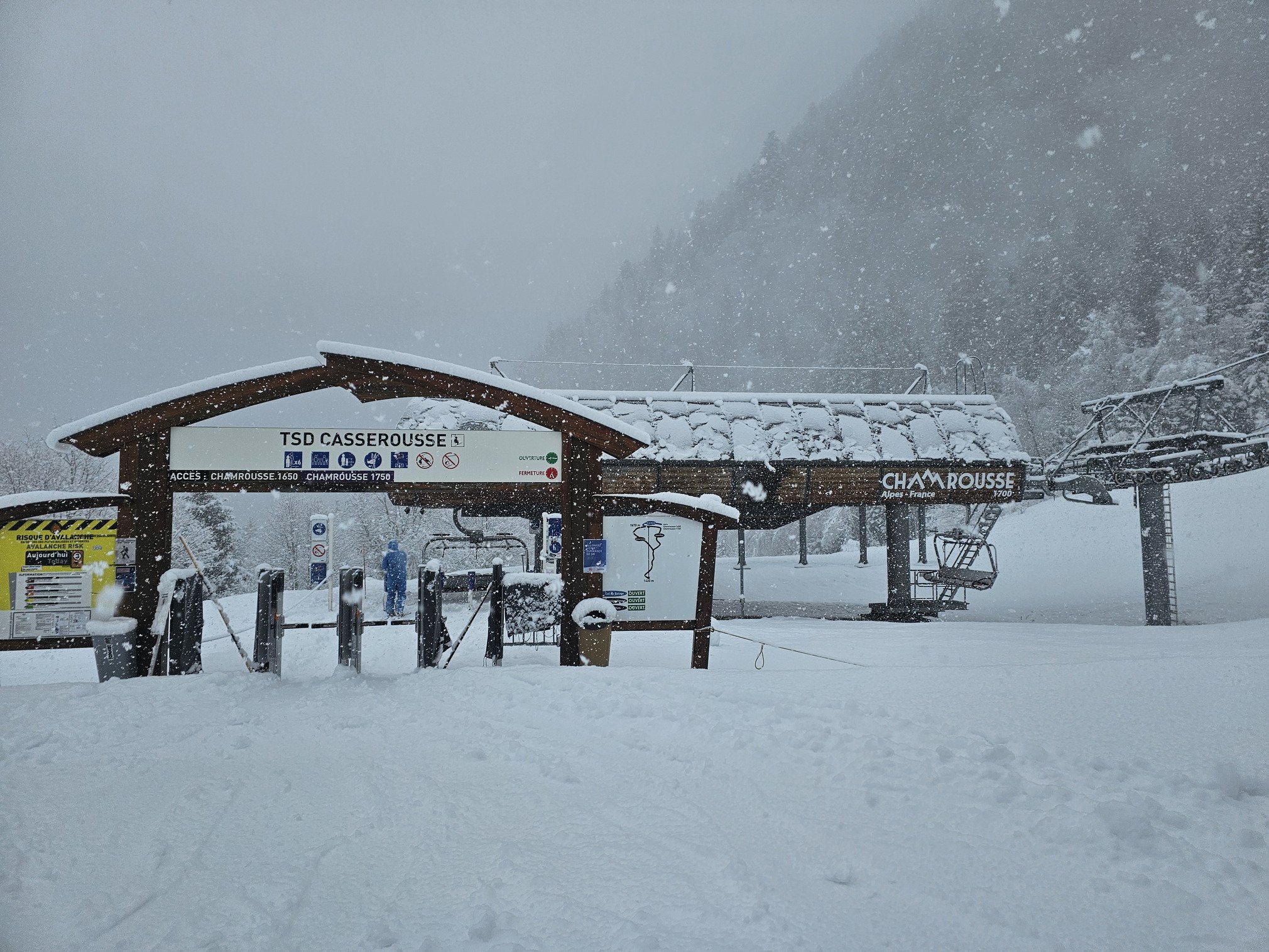 J’ai passé le week-end à Chamrousse. Pour profiter, et non pour bosser (je travaille à l’Office de Tourisme et vis à Grenoble). Hier, dimanche 22 mars, depuis le balcon de l’appart skis aux pieds (le Panoramic), il neige fort. Pour ce dernier jour du TSD de Casserousse, ça promet des conditions intéressantes.