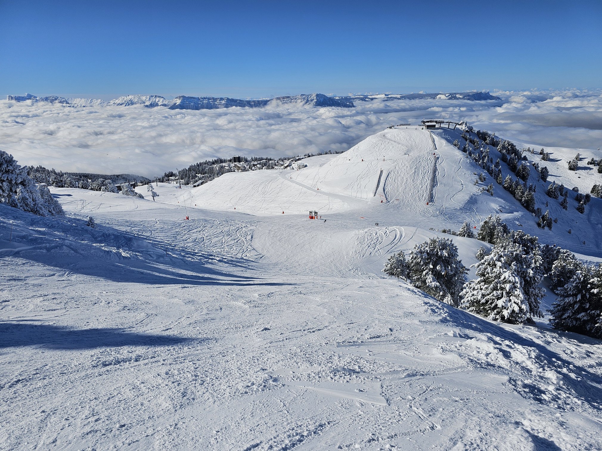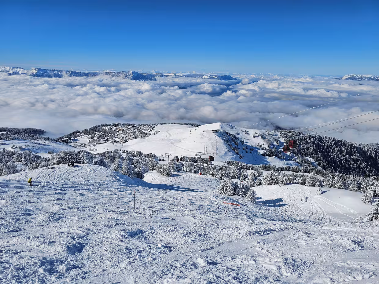 Je travaille à l’Office de Tourisme de Chamrousse et j’avais annoncé récemment l’ouverture de la piste Marmottes (qui est difficile à ouvrir pour différentes raisons). Du coup, ça sentait l’ouverture à 100% des pistes. Et bin c’est aujourd’hui ! Neige à gogo, neige dans les sapins, même l'Aiguille (plein sud) est immaculée de blanc. Bref, ici, il y a une ambiance de Laponie à 35 minutes de Grenoble.