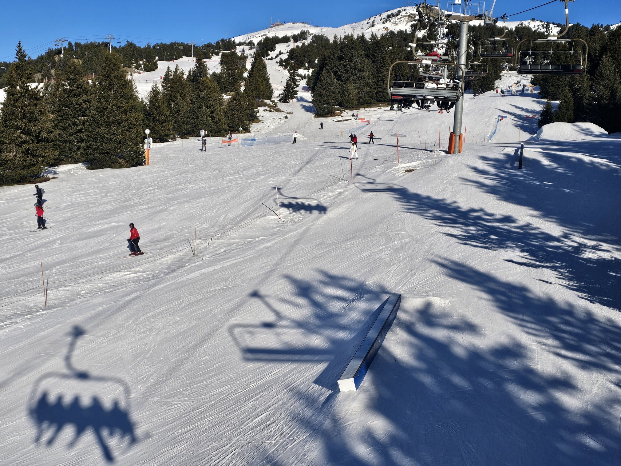 Peu de monde aujourd'hui, ça sent la fin des vacances de Noël. Quasiment aucune attente aux remontées mécaniques. Snowpark super. Petit ravito au resto de la Croix, et un petit vin chand à la Croisette pour se réchauffer avec vue sur les pistes. Cette année, le ski nocturne a eu une petite extension via la piste bleue Bérangère.