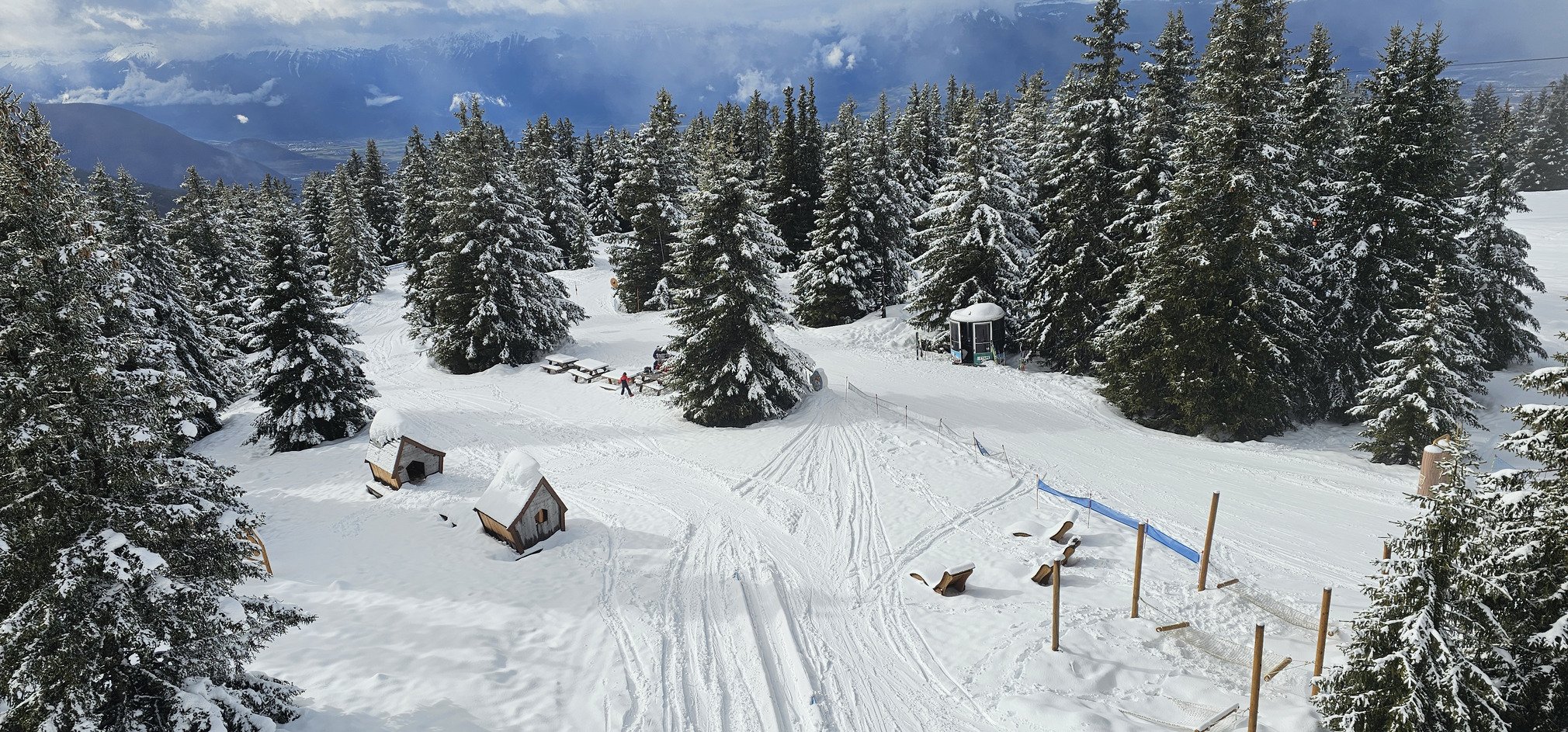 C’est baché au niveau de la Croix de Chamrousse, on décide d’aller à Roche directement via le télésiège des Gaboureaux et la liaison Roche.