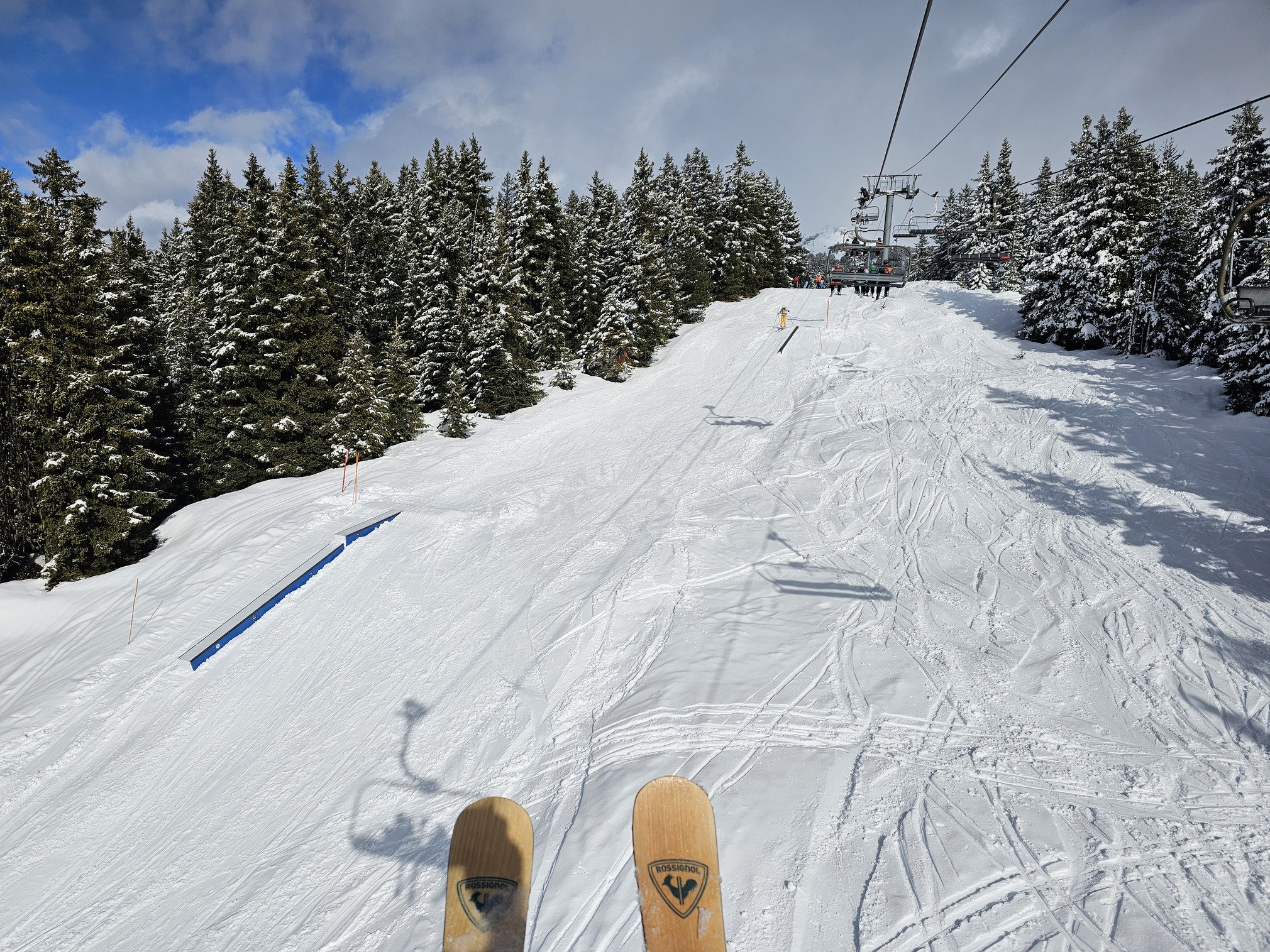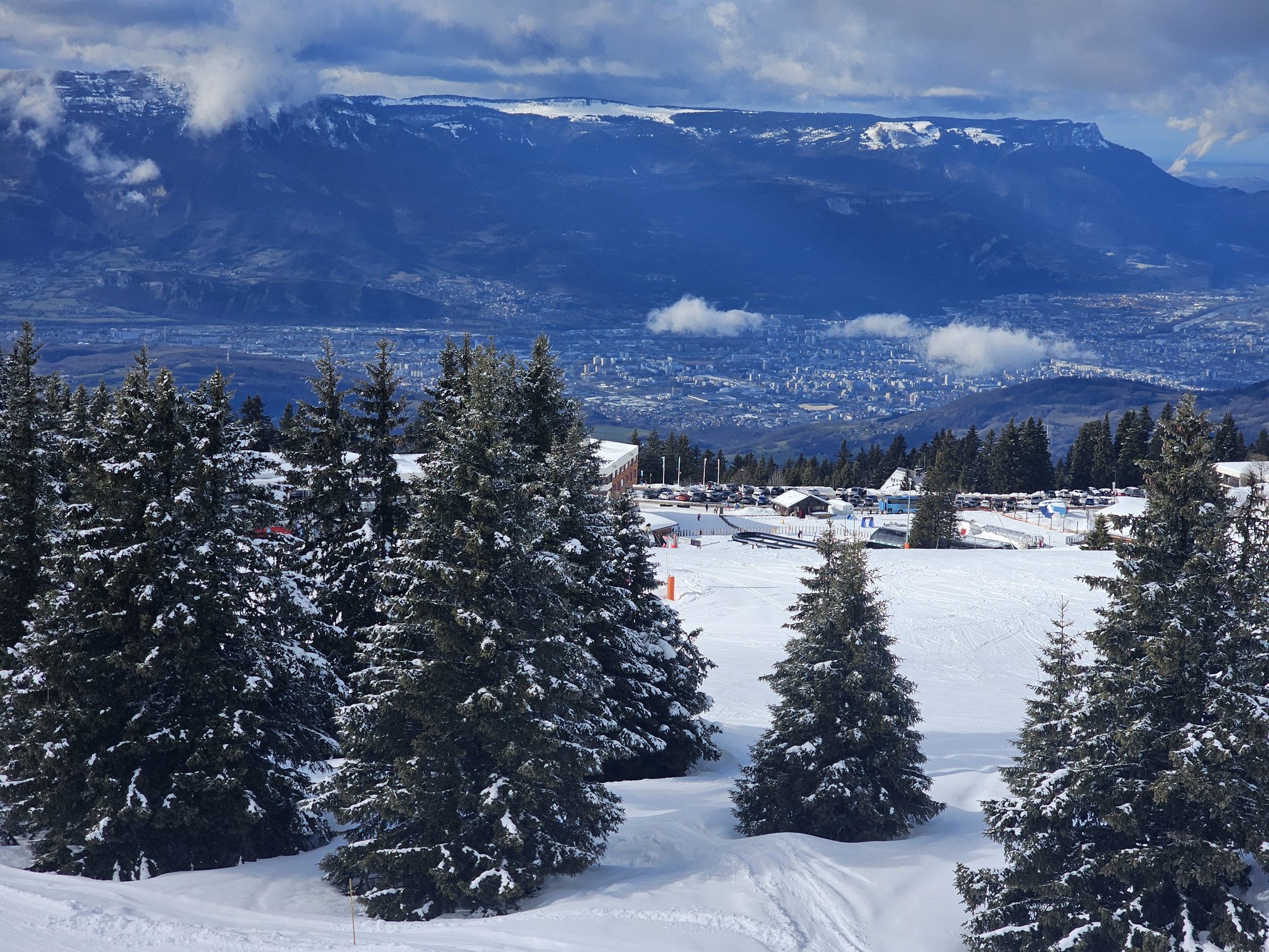 Je mets 3/5 sur l’échelle Skipass. Session 13h15 - 14h45. La neige est bien plus qualitative de ce à quoi je m’attendais avec du ski de piste et des bords de piste intéressants. Neige un peu lourde et collante pour un snowboardeur, j’ai été inspiré de prendre des skis Rossignol Essential (ils sont trop bien d’ailleurs). Les jeux de lumières avec le soleil et un ciel chargé étaient sympas. Il est 17h00 et c’est ciel bleu à la Croix. C’est décidé je prends la voiture demain pour tenter la session ski nocturne (à Chamrousse, c’est ski de nuit les jeudis des vacances scolaires et les samedis, sauf météo défavorable ; il y a aussi le Luge Park ouvert en nocturne et bientôt un petit nouveau, plus d’infos plus tard).