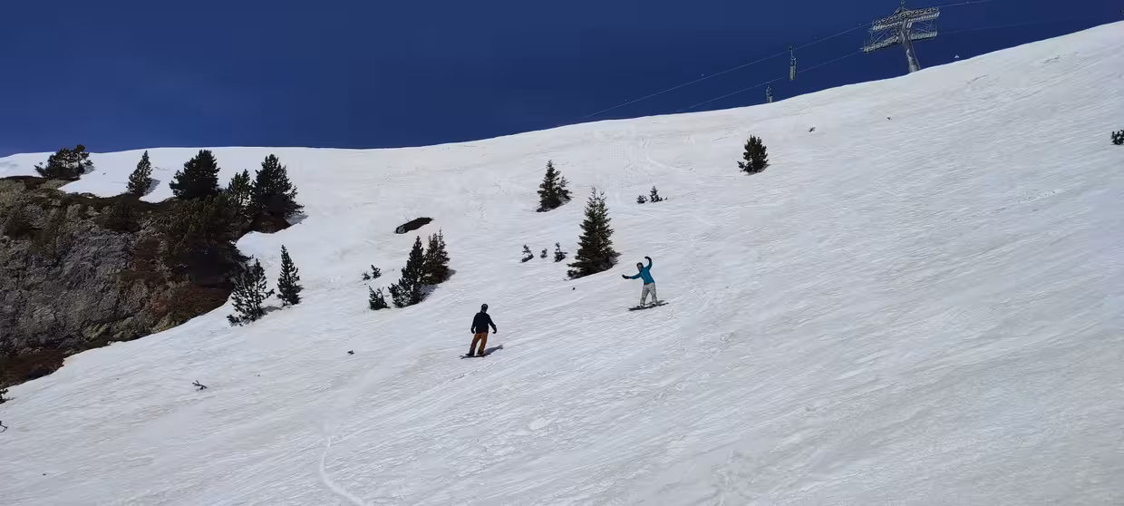Neige de printemps certes mais bien correct jusqu'à 15h. Du soleil qui se voile au cours de la journée.