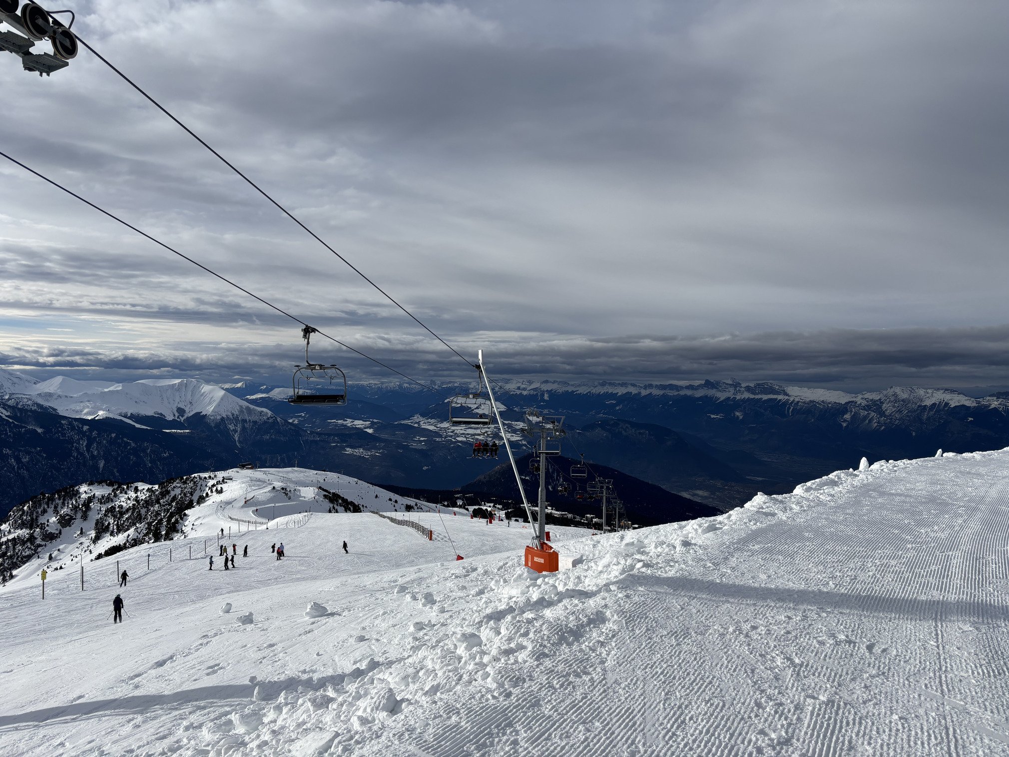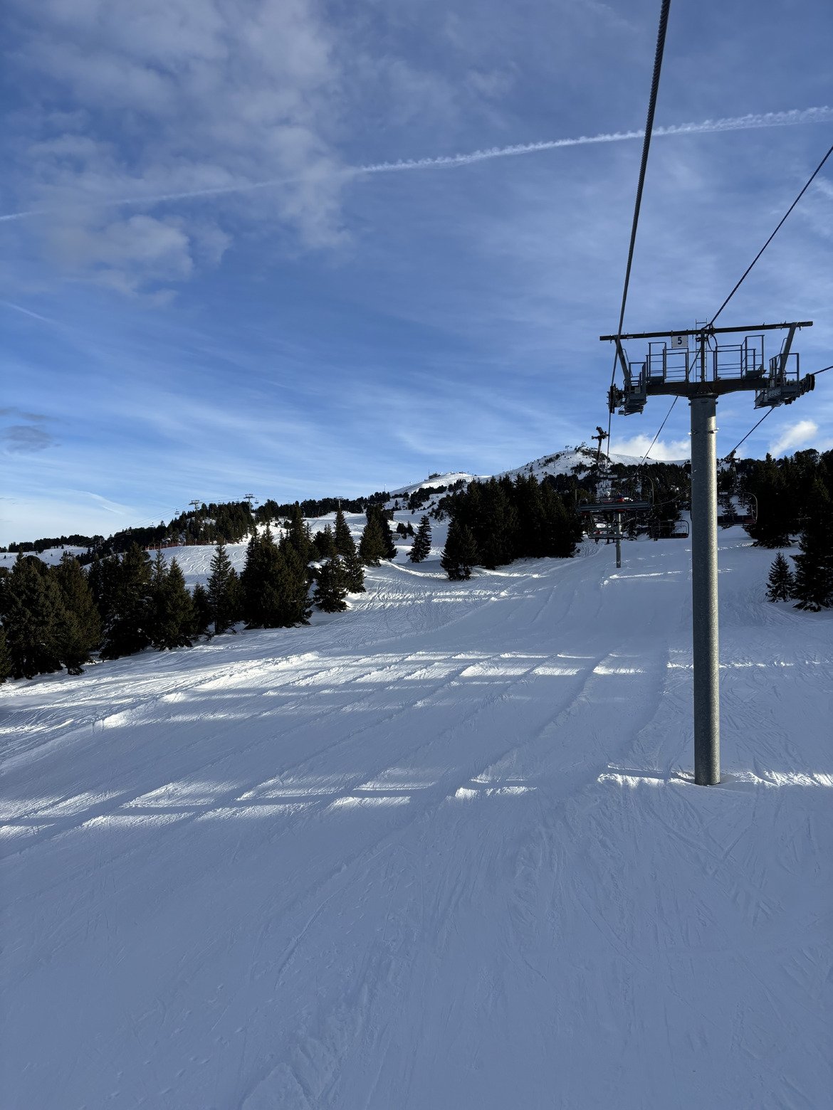 Neige quand même assez dure le matin, les petits hors piste sous les télésièges pas agréables du tout: une sorte de poudreuse gelée qui tape dans les spatules et vous cuit les cuisses. C’était beaucoup mieux l’après-midi avec l’arrivée des nuages qui ont gentiment fait remonter le mercure et l’arrivée de la neige. Toute la zone (fermée) sous la télécabine est en très bonne condition avec les pistes Olympiques encore non damées :) Et bien sûr les pistes un régal !!