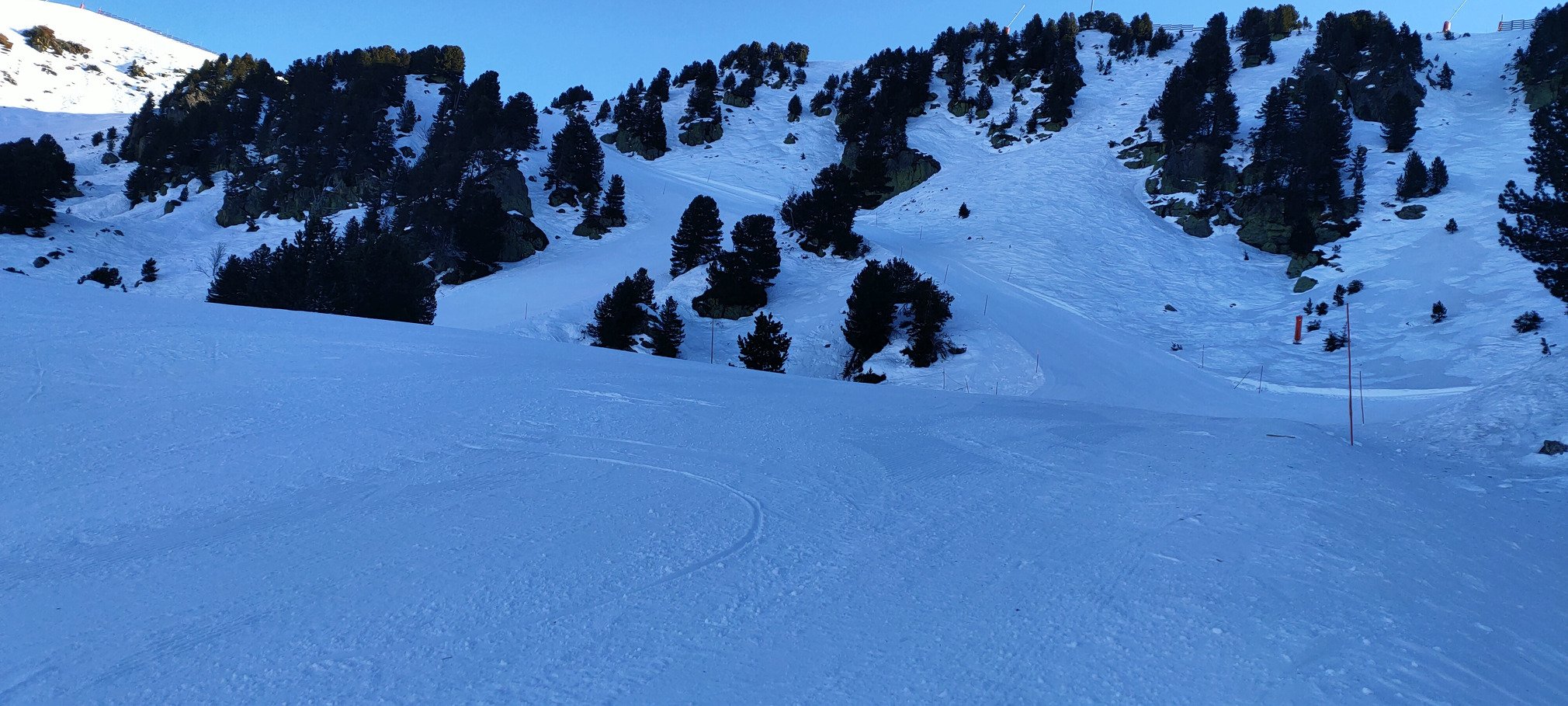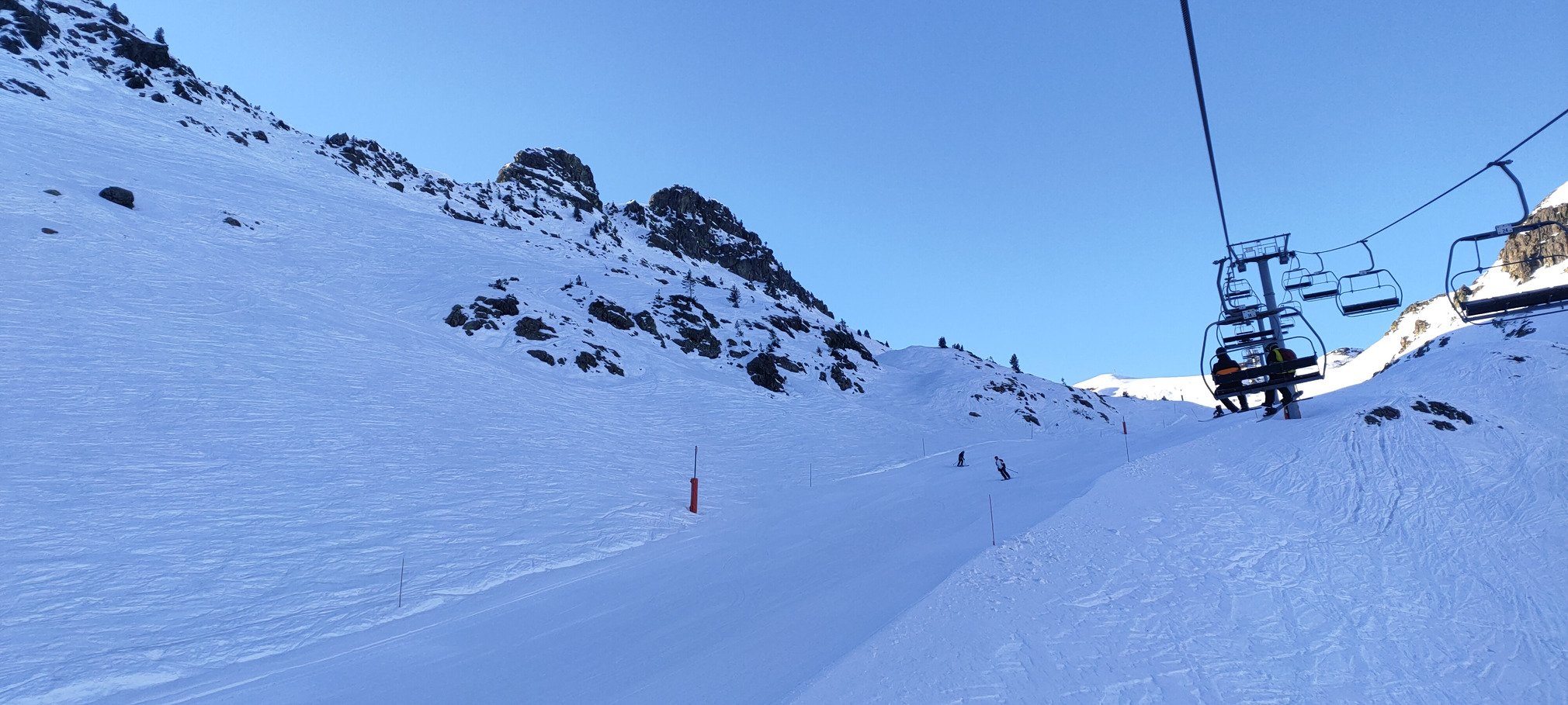 J'ai globalement trouvé le bas de Roche Bé un peu moins bon (car davantage de parties lustrées). Certaines pistes non damées du jour (comme les Arolles, sur Recoin) étaient même limites dangereuses. C'est pourquoi je n'ai pas tenté le diable sur les Couloirs de Casserousse (piste fermée, qui devait être en carrelage +++ ). Je n'ai pas mis non plus les spatules en hors piste, parce que ça avait l'air vraiment immonde, et ce de partout. Jusqu'aux prochaines chutes de neige, vous pouvez laisser au garage les skis de plus de 80 au patin.