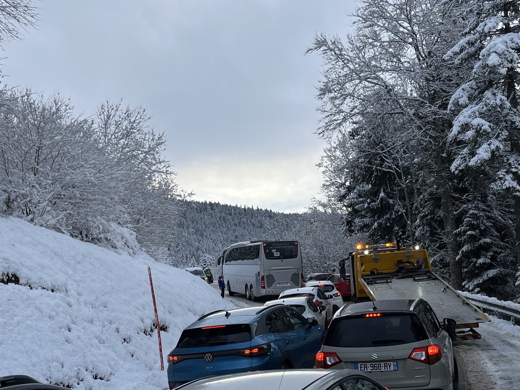 Si encore les gens étaient organisés, s’arrêtaient dans les endroits prévus pour… mais non entre ceux qui ont abandonné leur voiture au bord de la route dans la nuit, ceux qui s’arrêtent pour chaîner en plein virage, ça finit immanquablement par bloquer le bus qui montait bien jusque là … c’est alors que les conn***s doublent sans visibilité et viennent bloquer ceux qui descendent (en manquant de m’écraser alors que je suis au milieu de la route en leur faisant des signes de s’arrêter, que tout est bloqué 🤬🤬🤬) merci, vous pouvez couper le moteur, vous en avez pour 15 minutes !