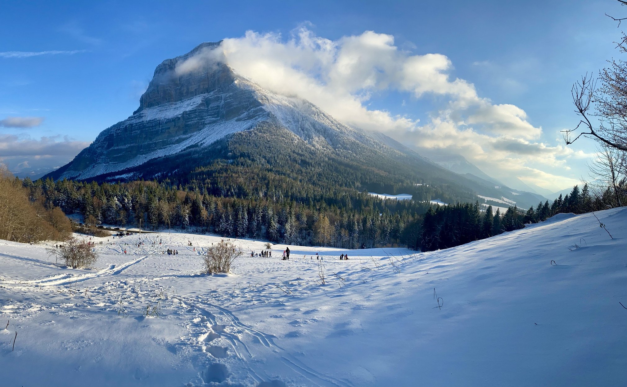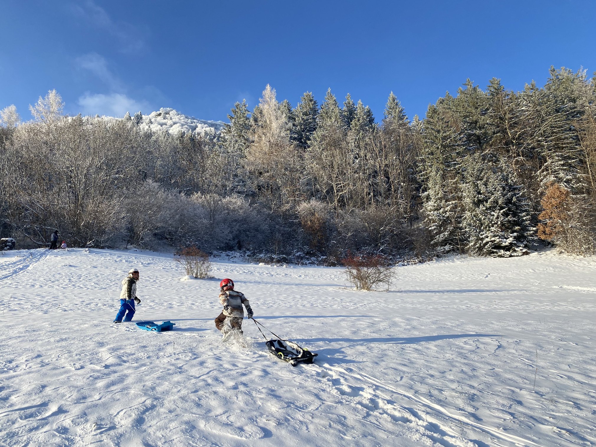 Pas tant de neige soit, mais bien suffisamment pour pleinement profiter en luge de cette pente parfaite, face au majestueux Mont Granier !