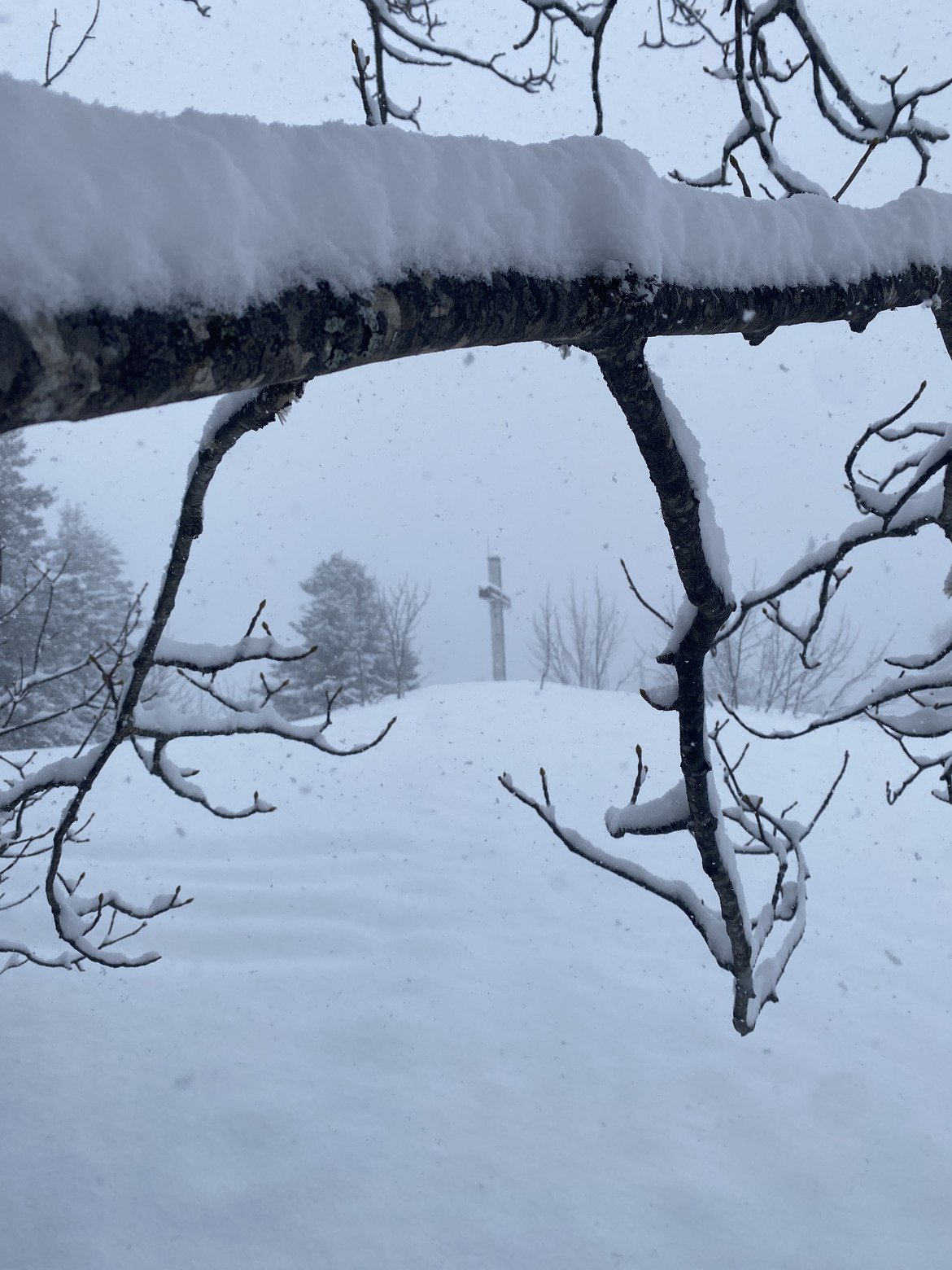 Redescente au parking, je vise une deuxieme montee mais je m'apercois que la lpn s'est abaissée et qu'il y a desormais 10cm de neige tres humide au parking. Je n'ai pas les chaines dans le coffre et je mise sur une retraite prudente. St Pierre est desormais sous la neige, et ca tombe jusque 700m à 11h