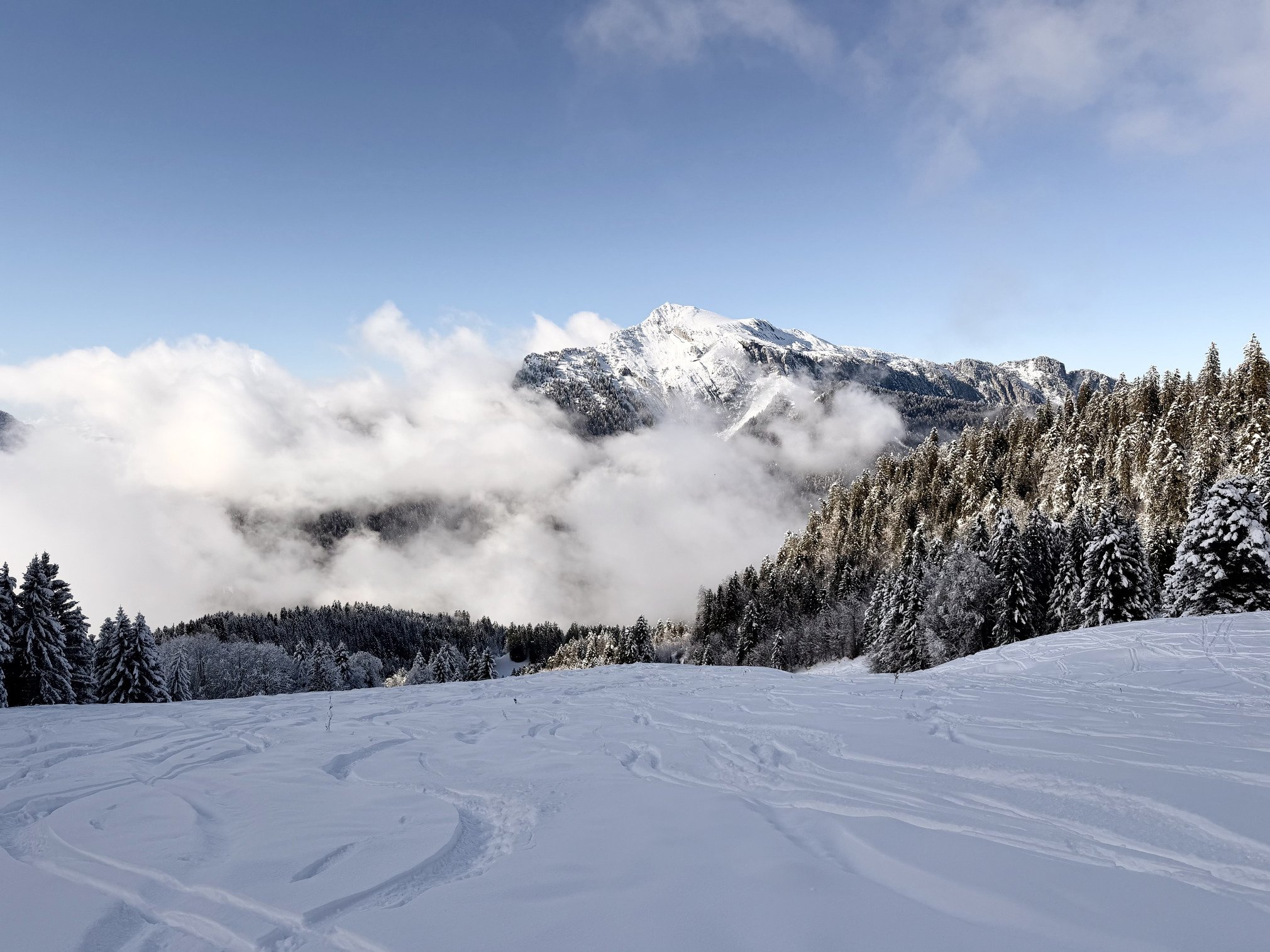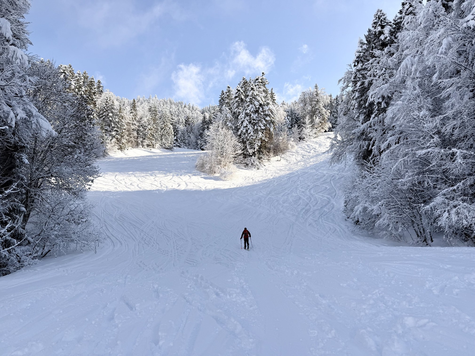 On m’avait annoncé entre 20 et 30 cm 📏 de neige fraîche sur un fond dur, et c’est confirmé, qu’est ce que ça fait plaisir ! C’est hyper tracé.