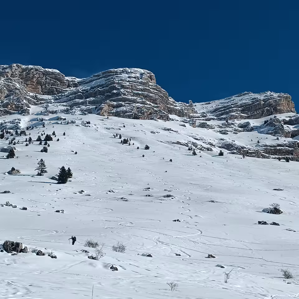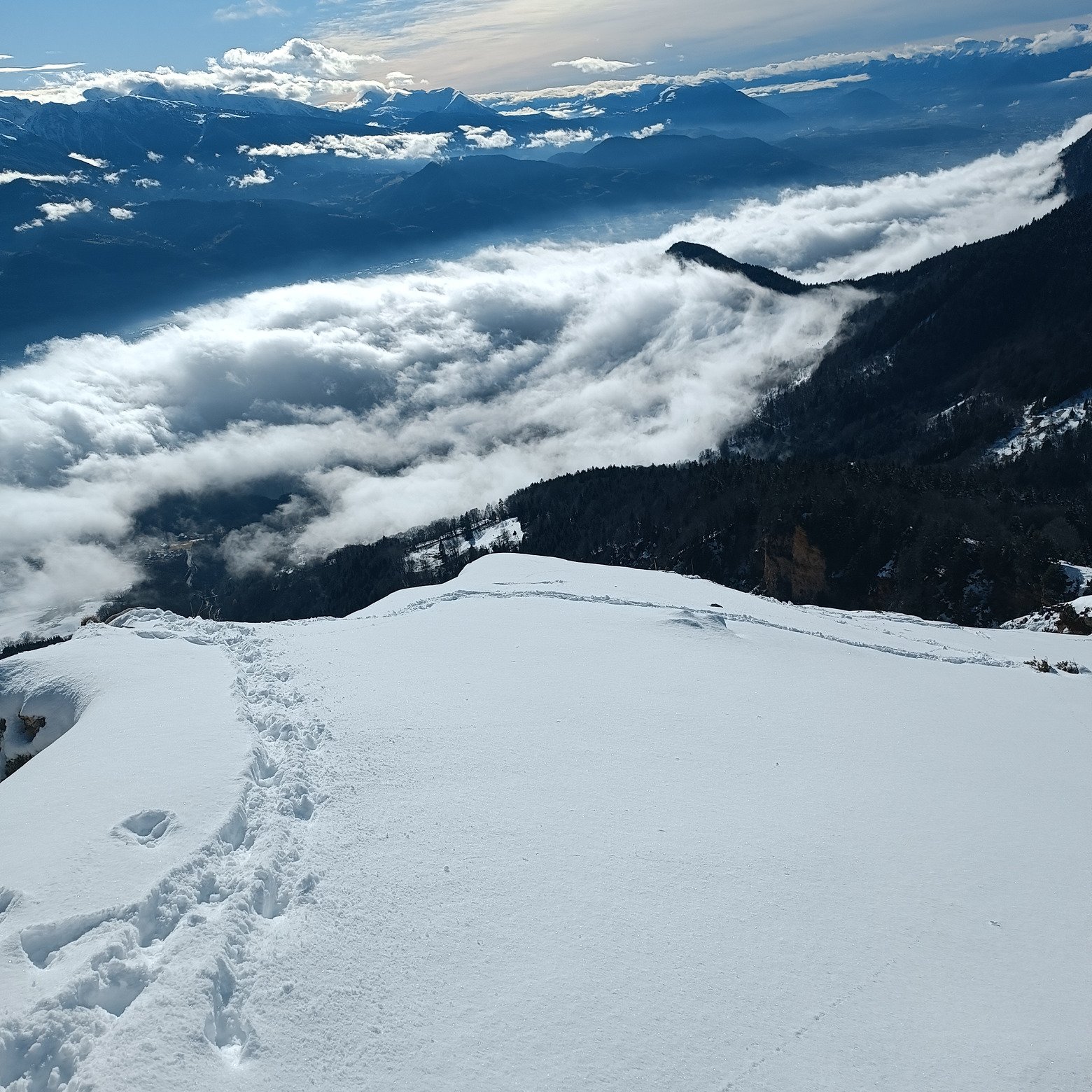 Avec les 15 cm de la nuit, direction la dent, rando agréable avec la belle fenêtre de ce jeudi matin,