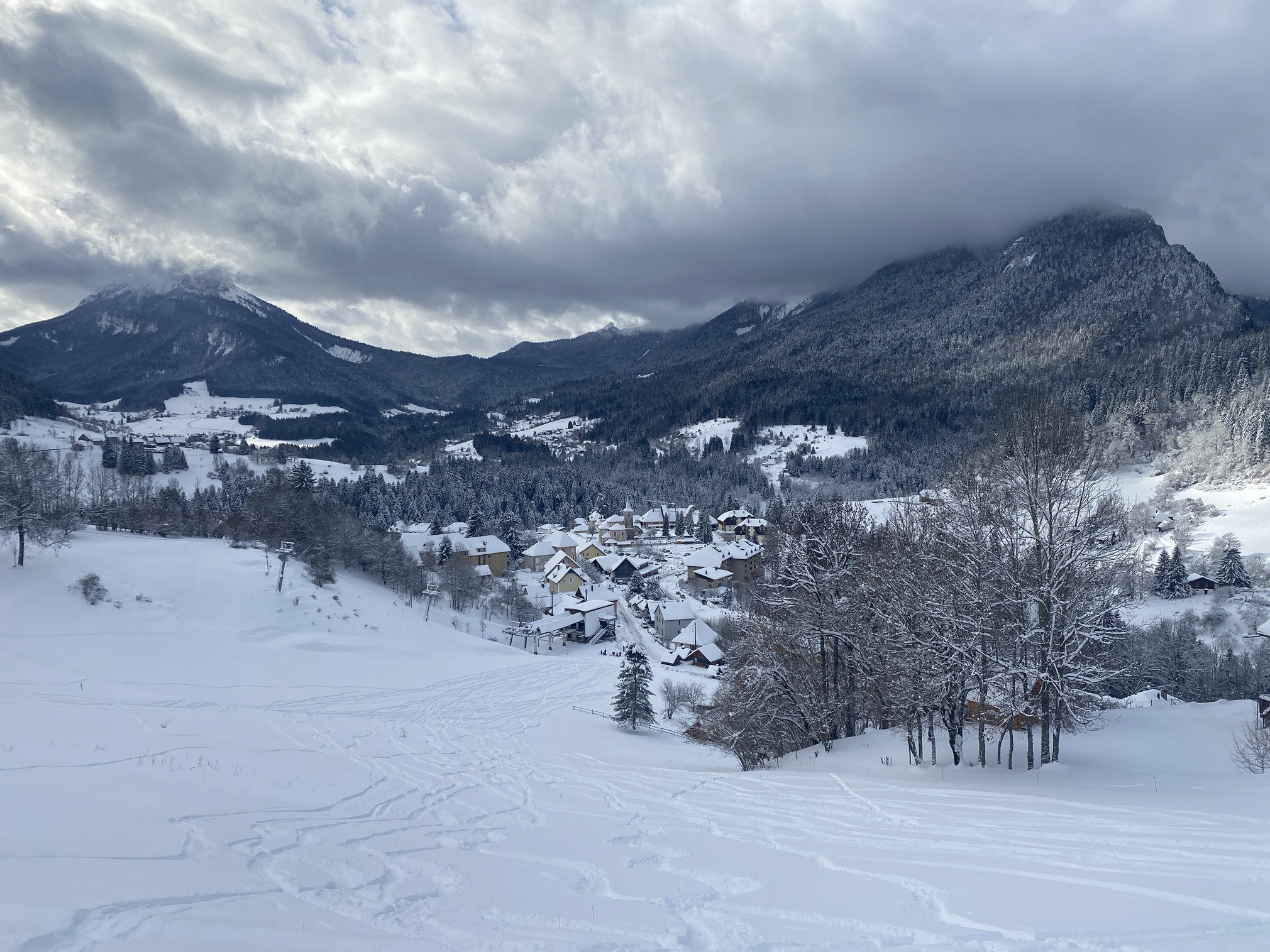 On se paie ensuite le luxe de chausser devant la voiture, et on file à la Scia, on profite de la trace car dans ces 30cms de neige légère dès le village, ce n'est pas du luxe que de s'epargner le traçage. On monte au bec de la scia, puis on file à la combe de l'ours. Bon le haut est top, mais les 2-3 du bas ont été damés je ne sais pour quelle raison. On remonte au sommet des anciennes pistes, et zou descente sur le village. Le ratio pente-quantité de neige dispense de faire trop de virages, mais on ne boude pas notre plaisir de profiter de cette belle Chartreuse hivernale !