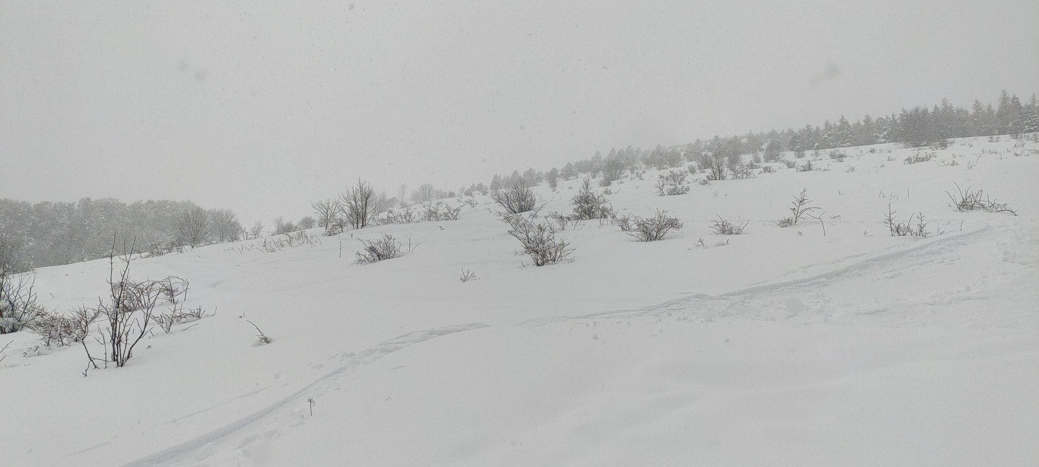 Arrivé au niveau de Pré Achard (1610 m d'altitude), je poursuis ma descente en direction de la piste rouge de l'ancien TK de Mauret. Dans une pente a priori anodine (dont l'inclinaison est à mon avis comprise entre 25 et 30 degrés), je déclenche une plaque d'une dizaine de mètres de largeur (sur 20 à 30 cm d'épaisseur)... qui m'embarque sur une dizaine de mètres. Comme la pente n'est pas raide, ça ne descend vraiment pas vite. Je suis très loin d'être enseveli (ça reste juste en dessous de mes genoux), mais un moment j'ai eu peur de me retrouver avec les jambes coincées sous les blocs de neige lourde. Heureusement ce n'est pas le cas et je m'en sors sans aucun dommage, mais avec une bonne frayeur ! 😱🥴