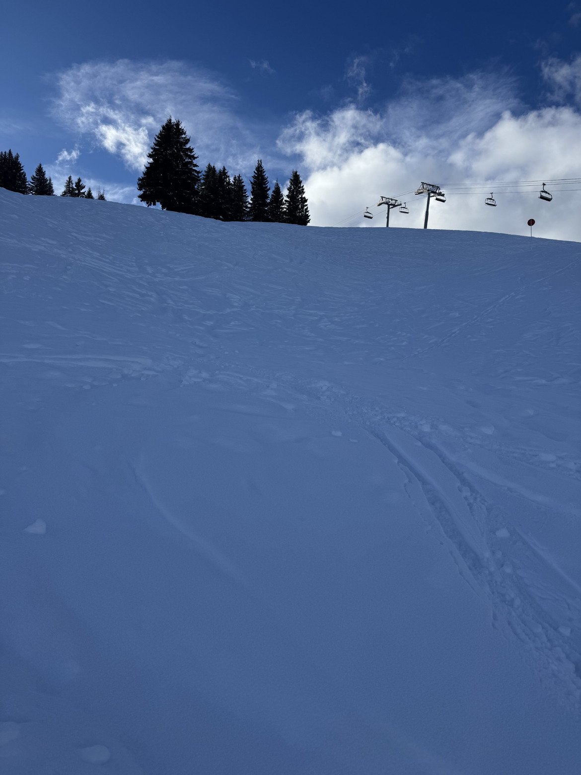 Jâavais pas trop dâattente pour la descente mais finalement le hors-piste Ă©tait bon đ„ł Un petit 5/10cm de frais par dessus une sous-couche maintenant stable et dur.