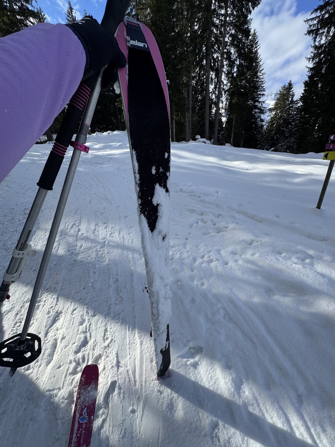 Il fait chaud pendant la montĂ©e mĂȘme avec le soleil parfois cachĂ© par quelques nuages. Ca botte fort dans toute la partie centrale, rien sur le plat du bas, une fois les peaux propres les deux derniers murs Ă©taient bon.