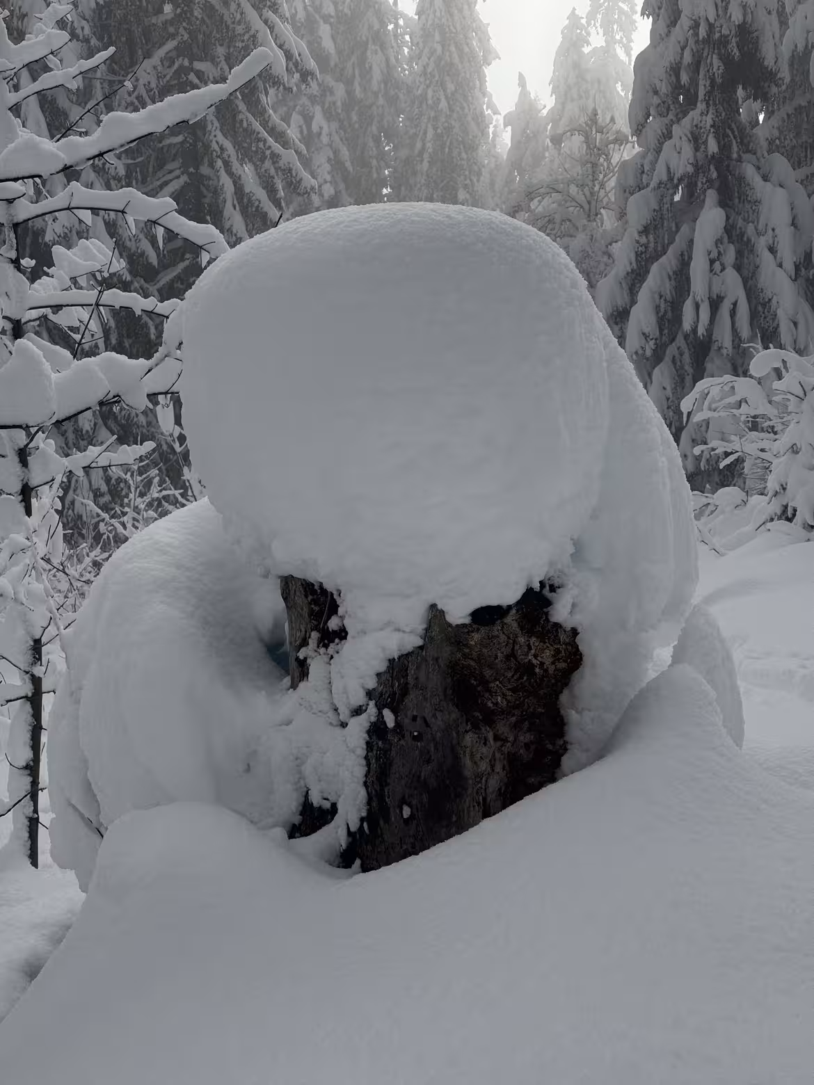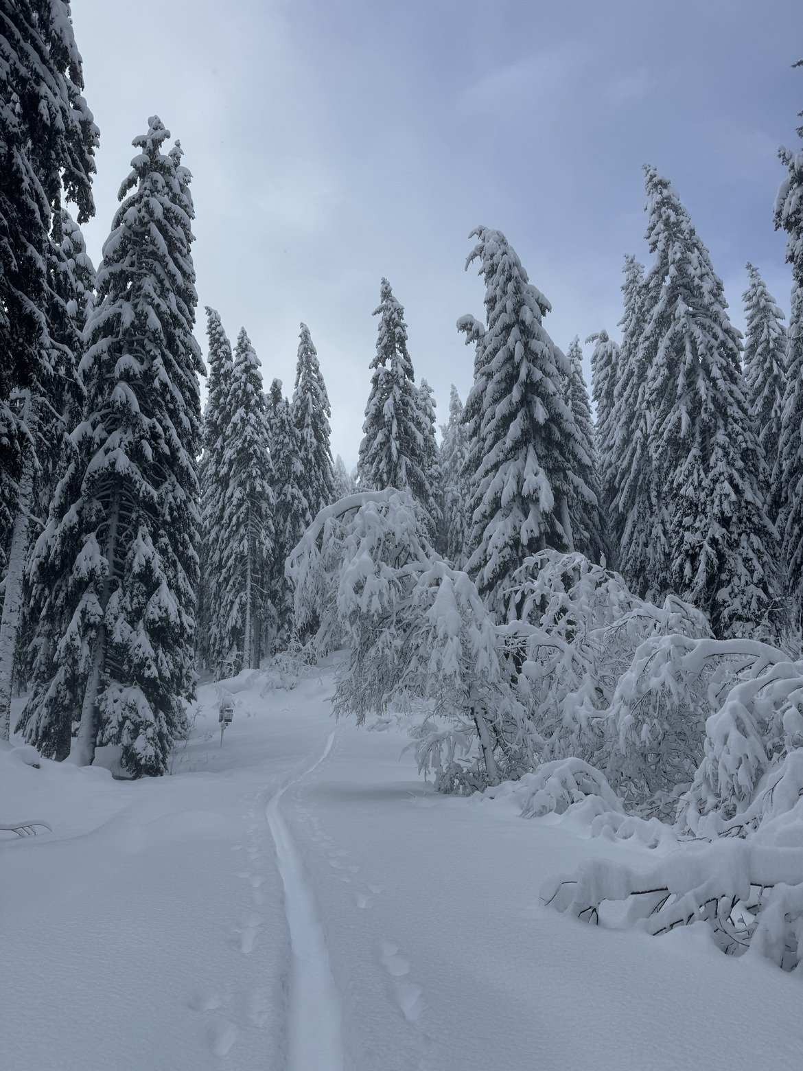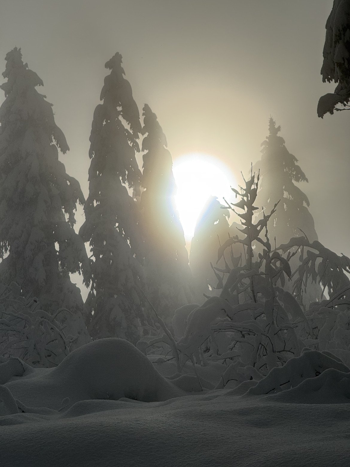 Merci à ceux qui sont montés le matin pour avoir fait la trace qui parfois arrivait au genou… Je suis montée au rythme d’une photo tout les 10m 😂 C’est quand même beau les sapins enneigés !