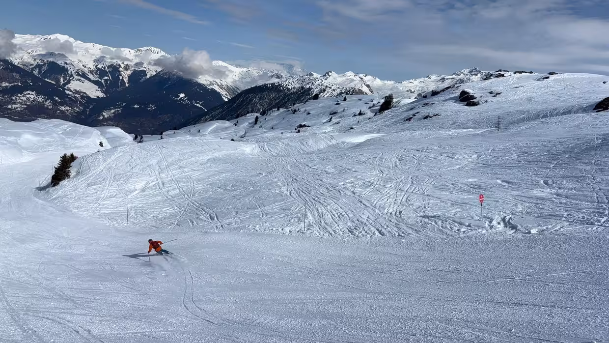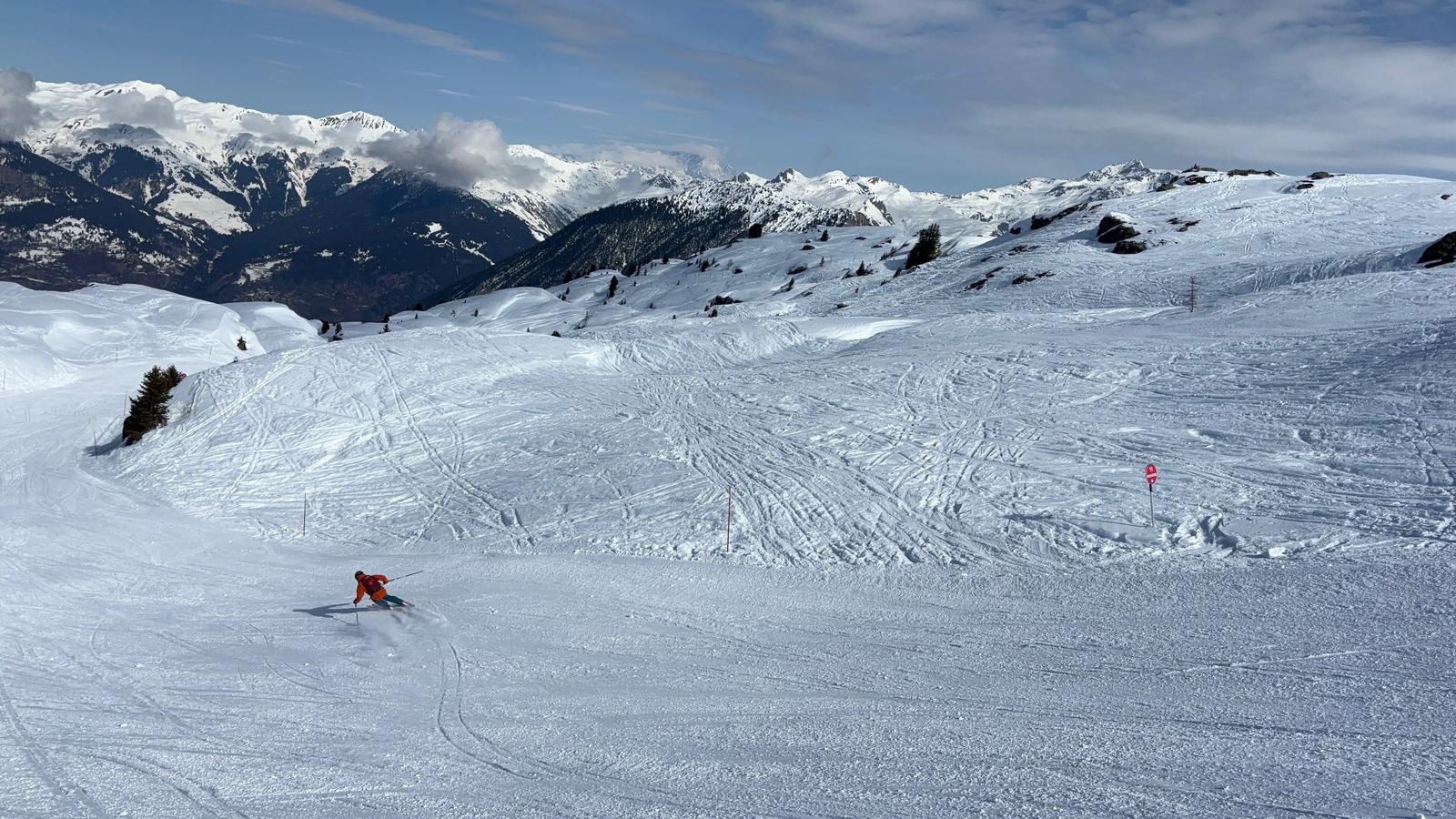 Des pistes bien préparées,avec une neige de bonne à légèrement printemps sur le bas.